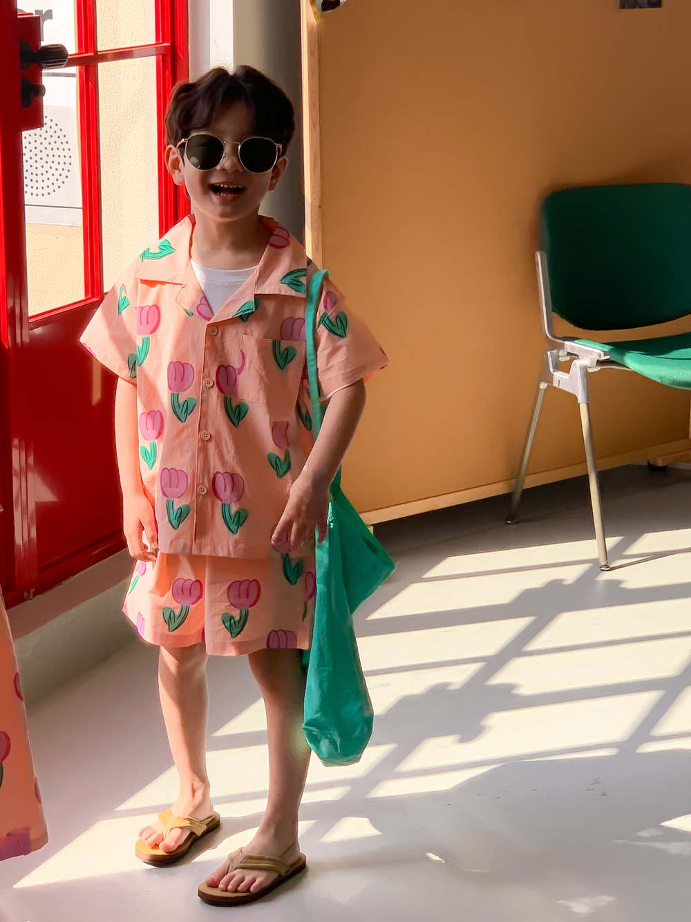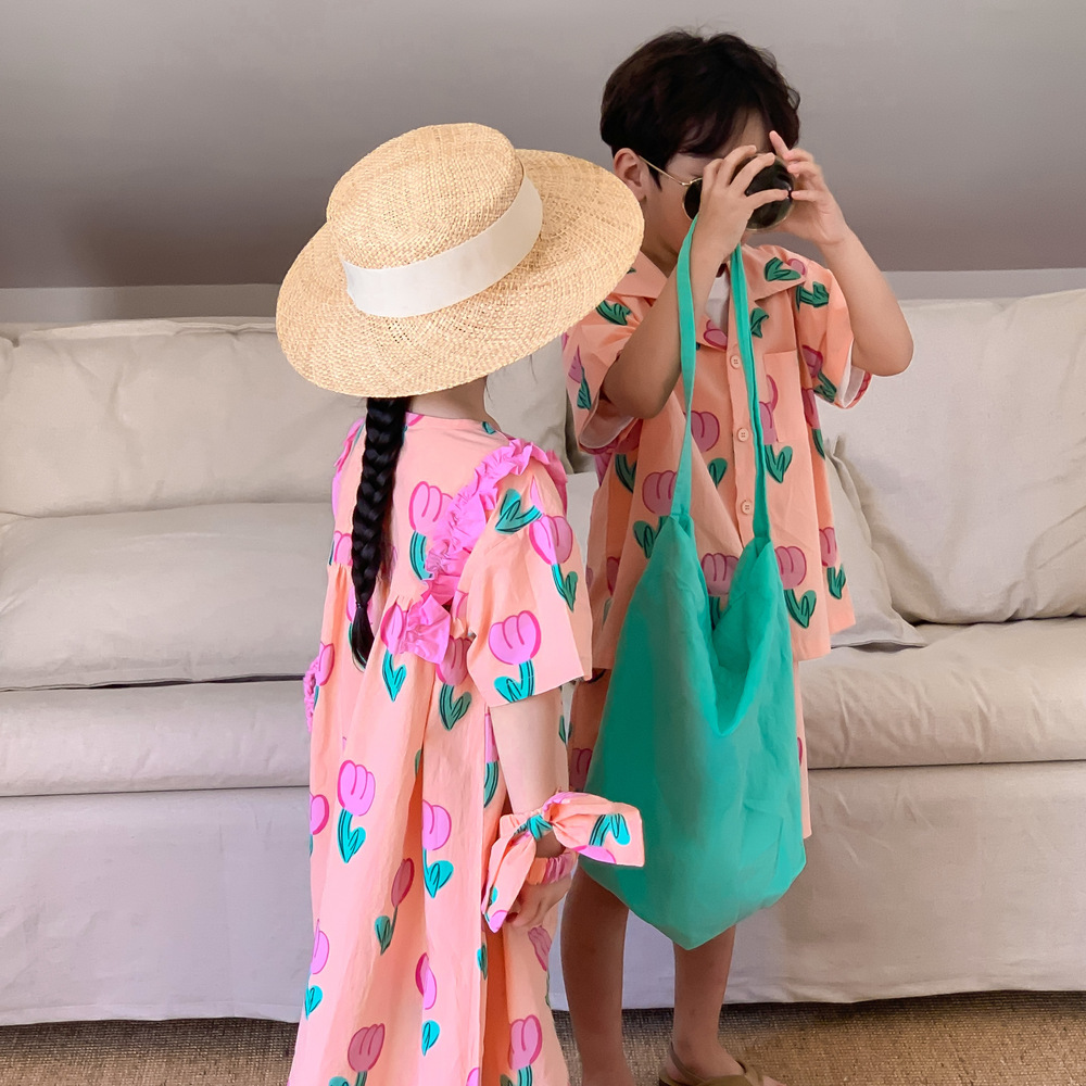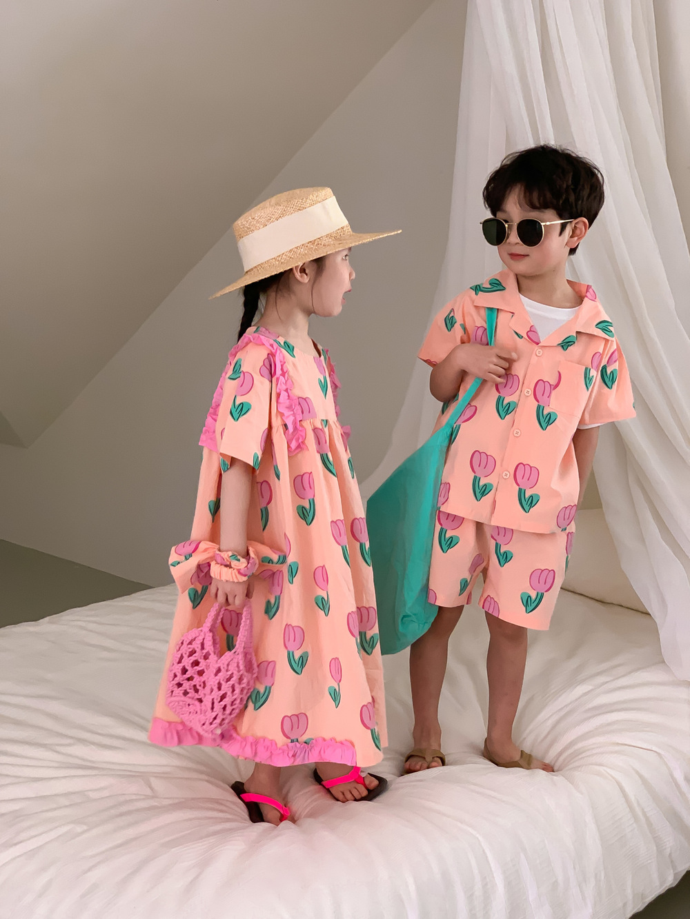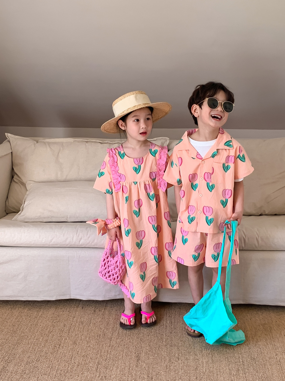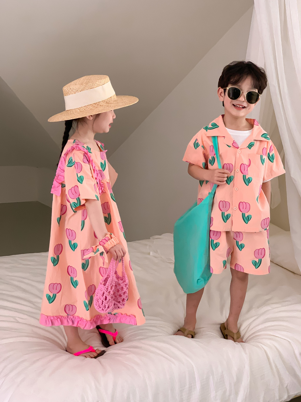 Одежда Brother and Sister 2023, летнее кружевное платье с принтом тюльпана или костюм из двух предметов для мальчиков, рубашка + шорты