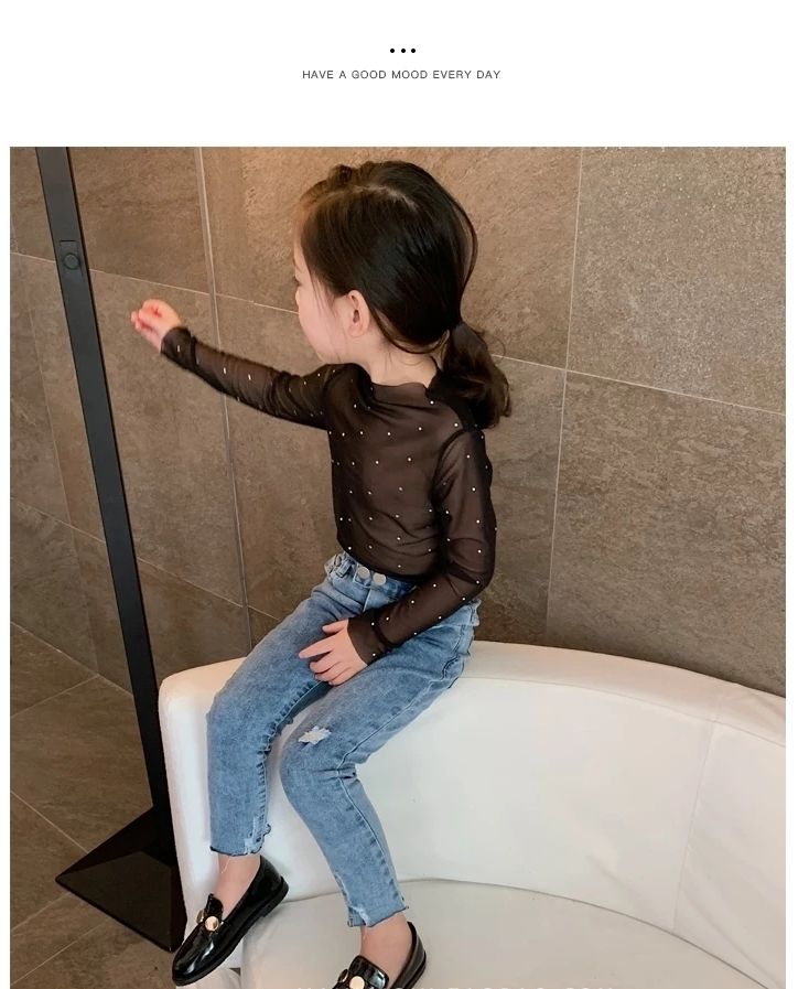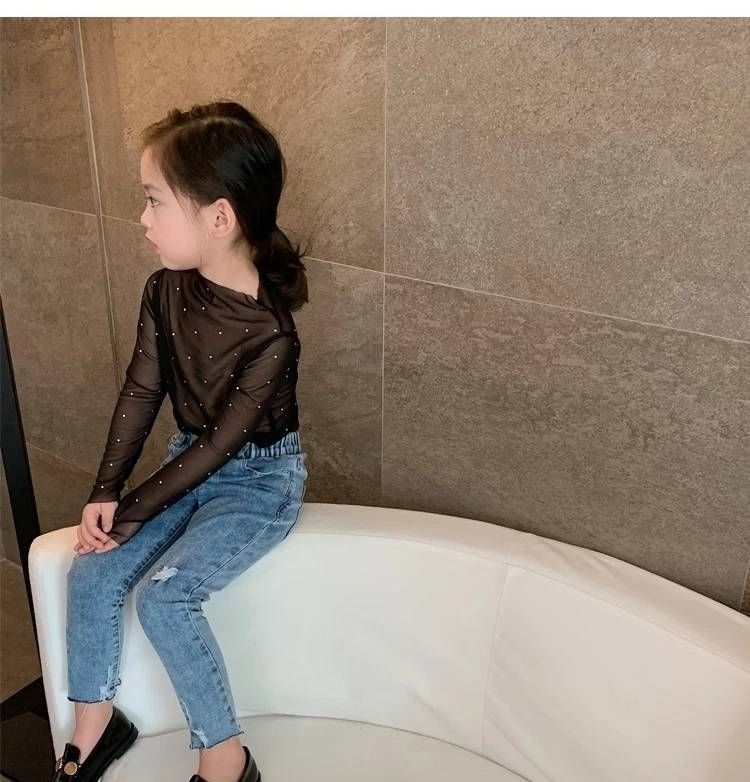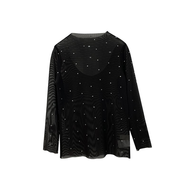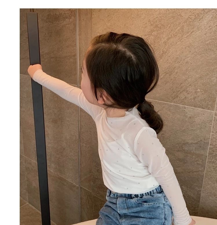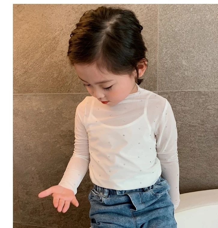 Одежда для девочки-подростка Стразы с длинным рукавом черный, Белый цвет футболки 1-12Yrs для девочек; Сезон весна-осень; Лидер. Сетчатые майки из тюля