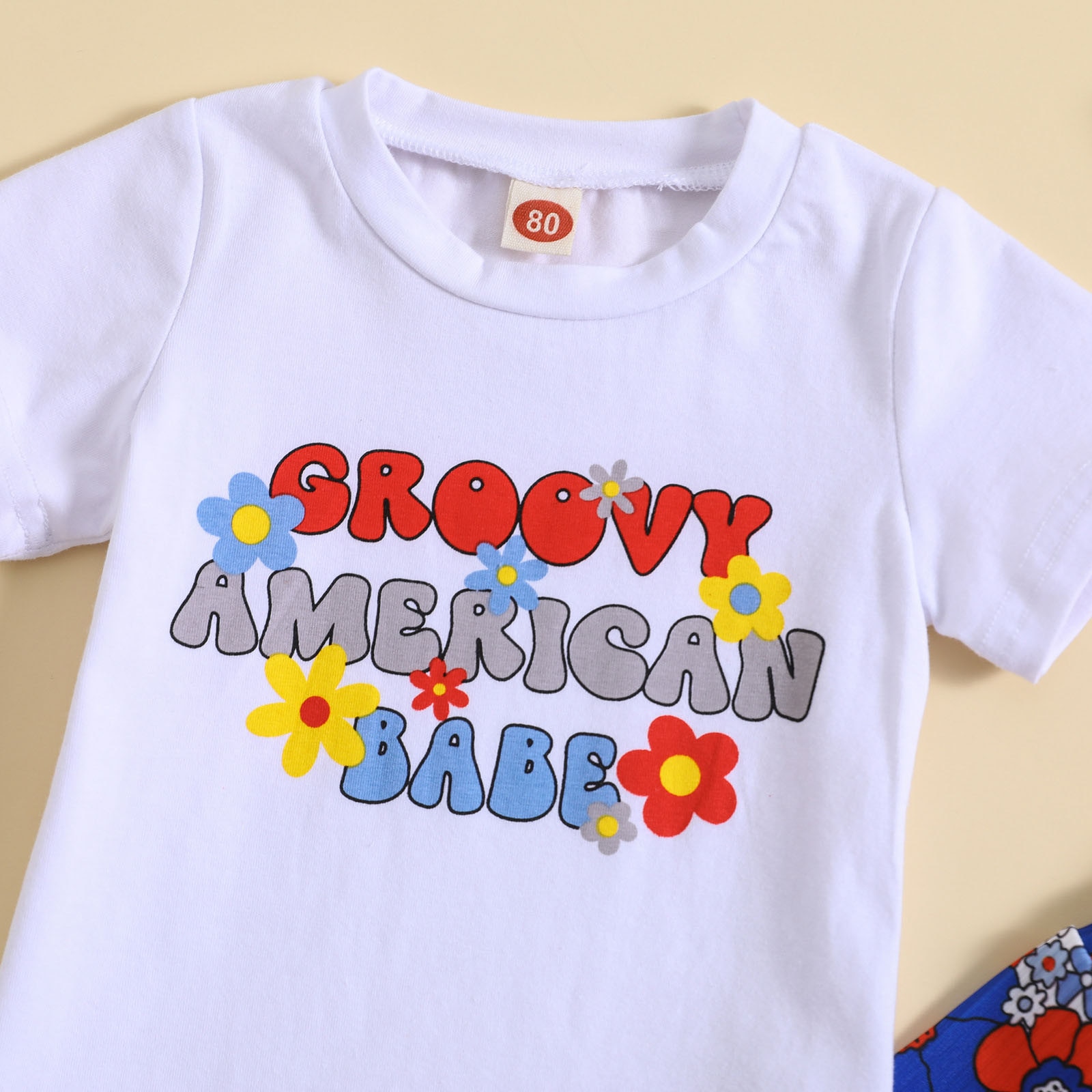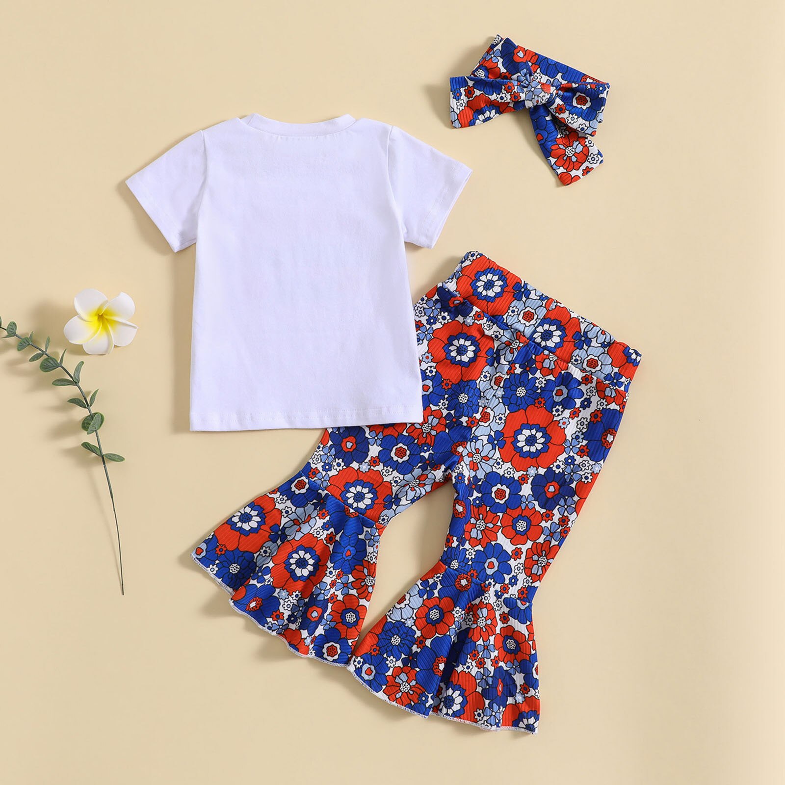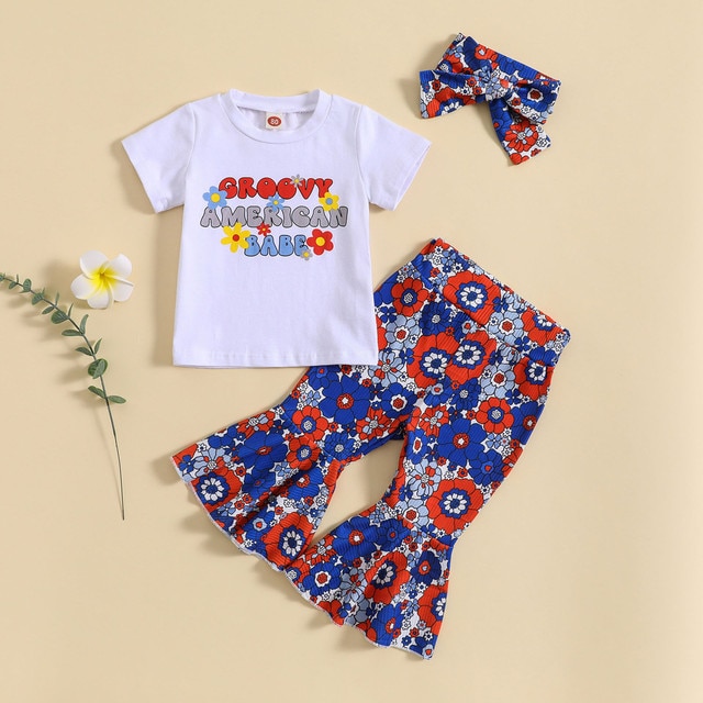 Малыши девочки с коротким рукавом День независимости 4 июля футболка топы с цветочным принтом колокольчики брюки повязки на голову Детские наряды