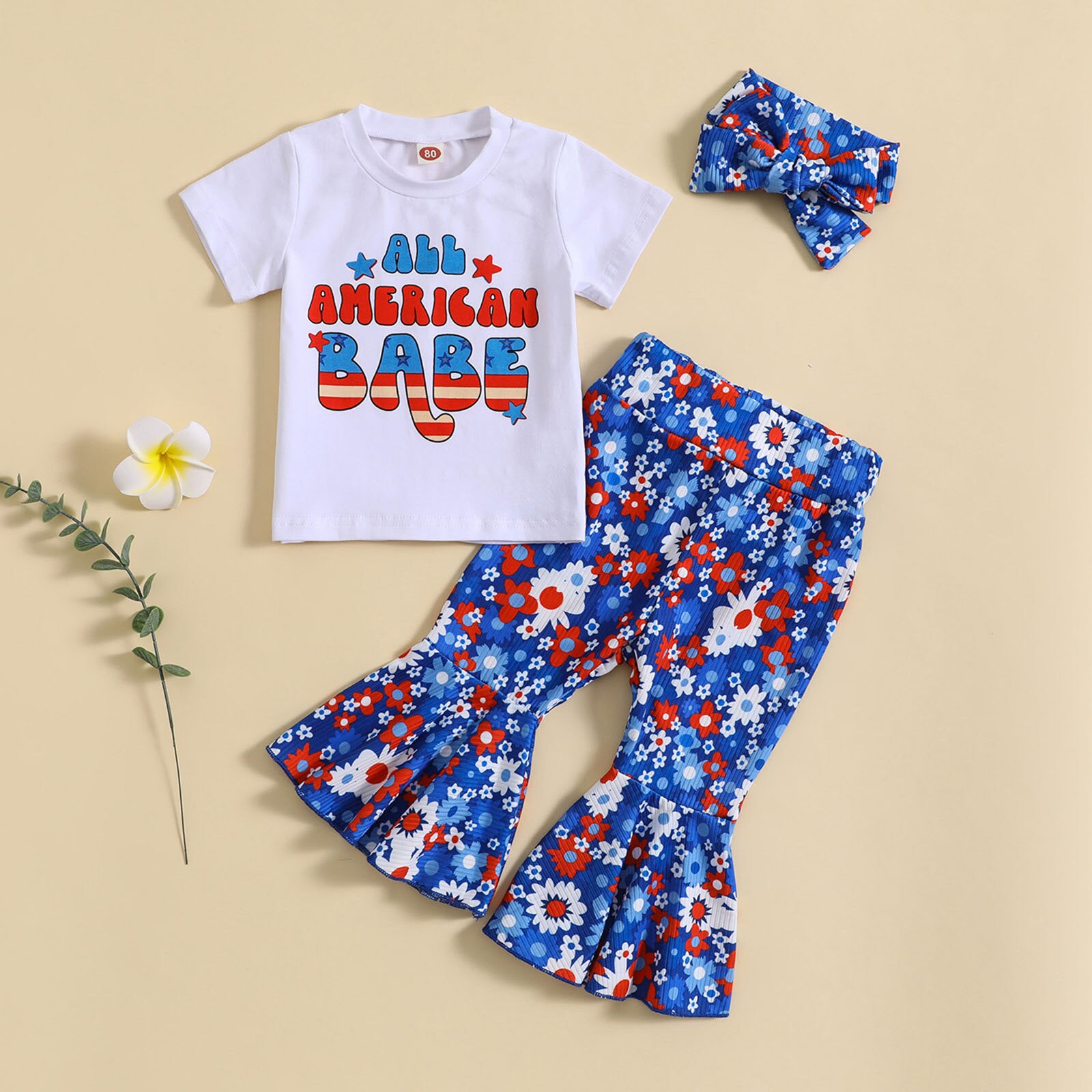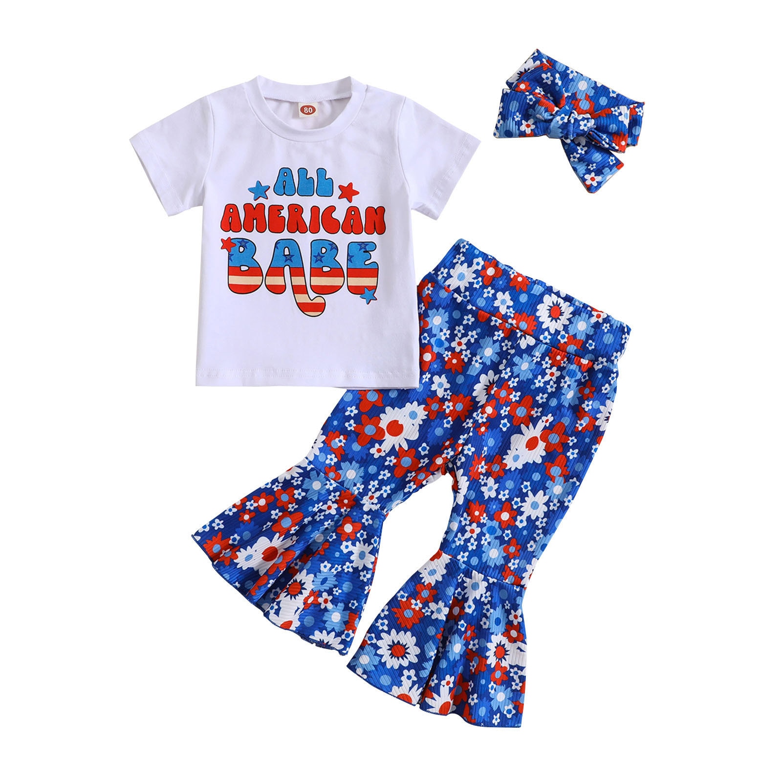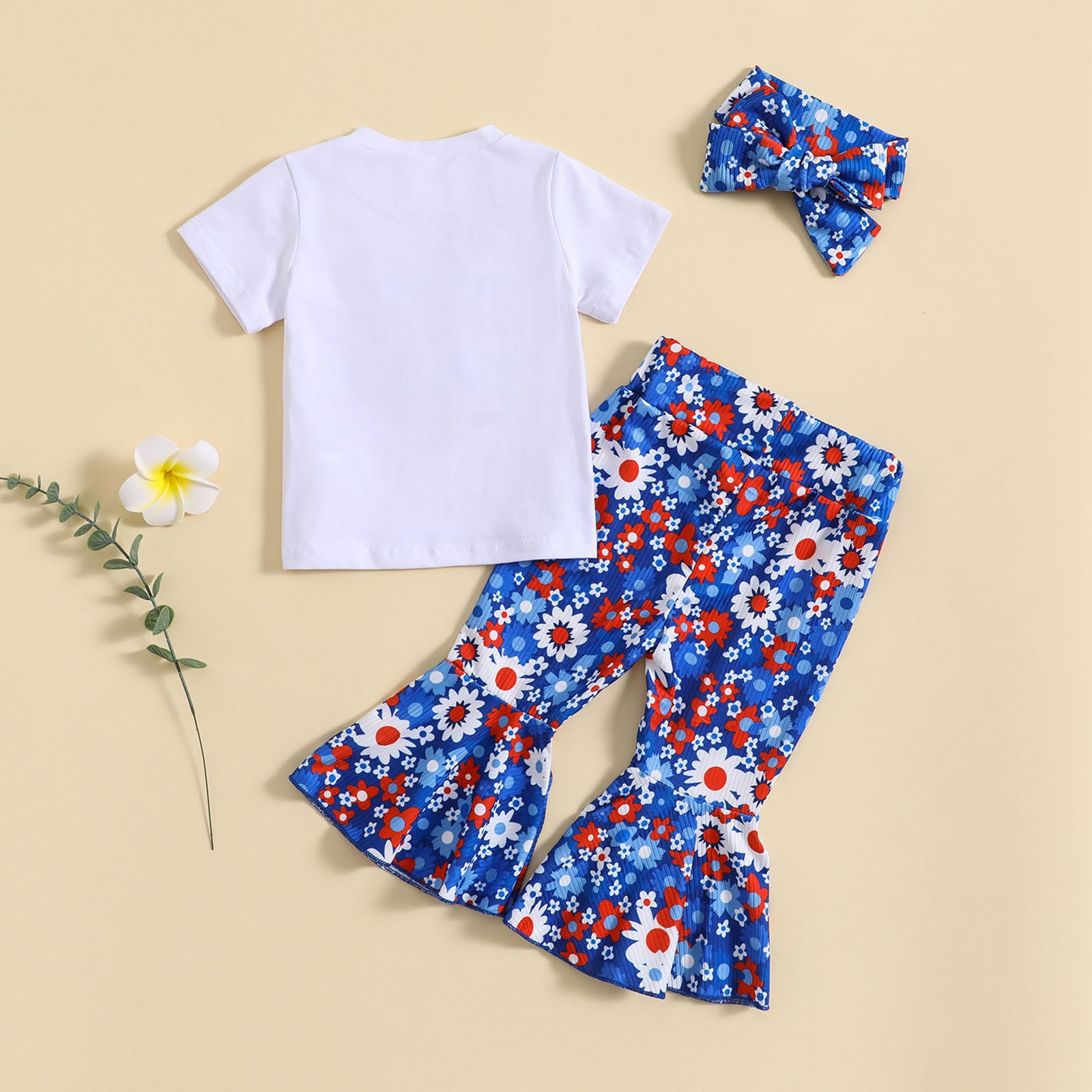 Малыши девочки с коротким рукавом День независимости 4 июля футболка топы с цветочным принтом колокольчики брюки повязки на голову Детские наряды