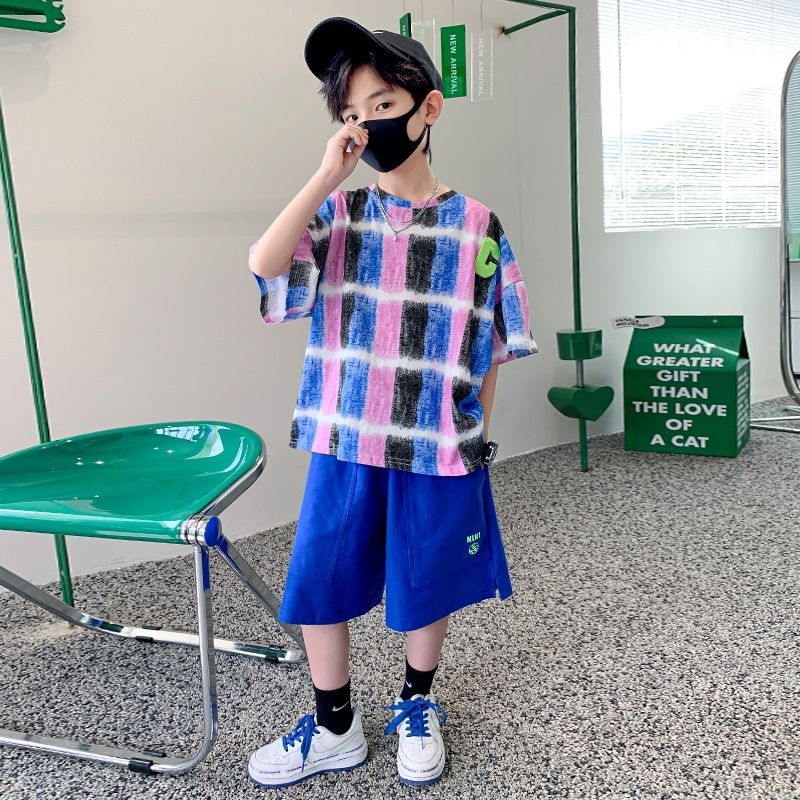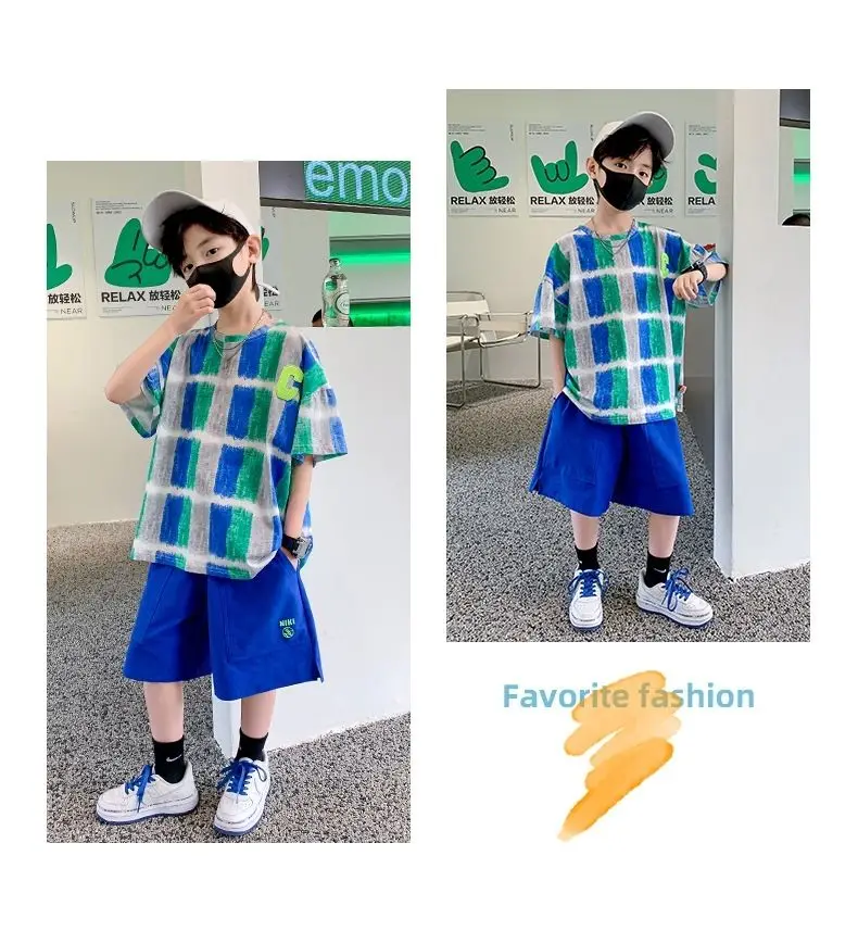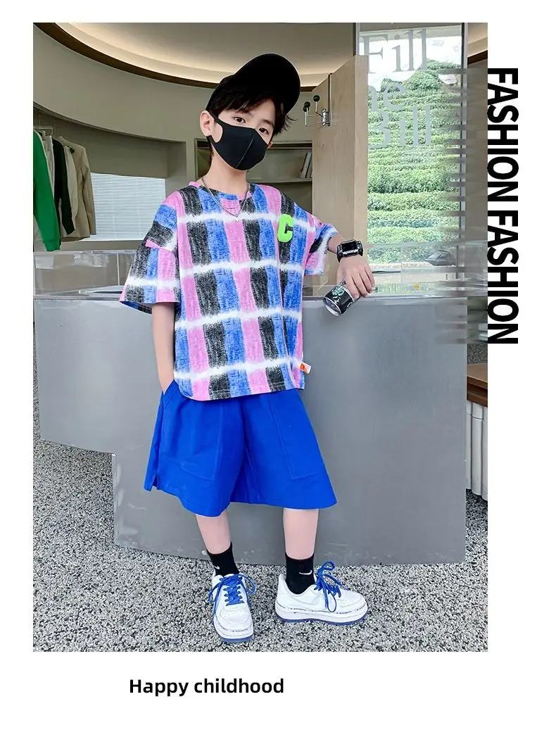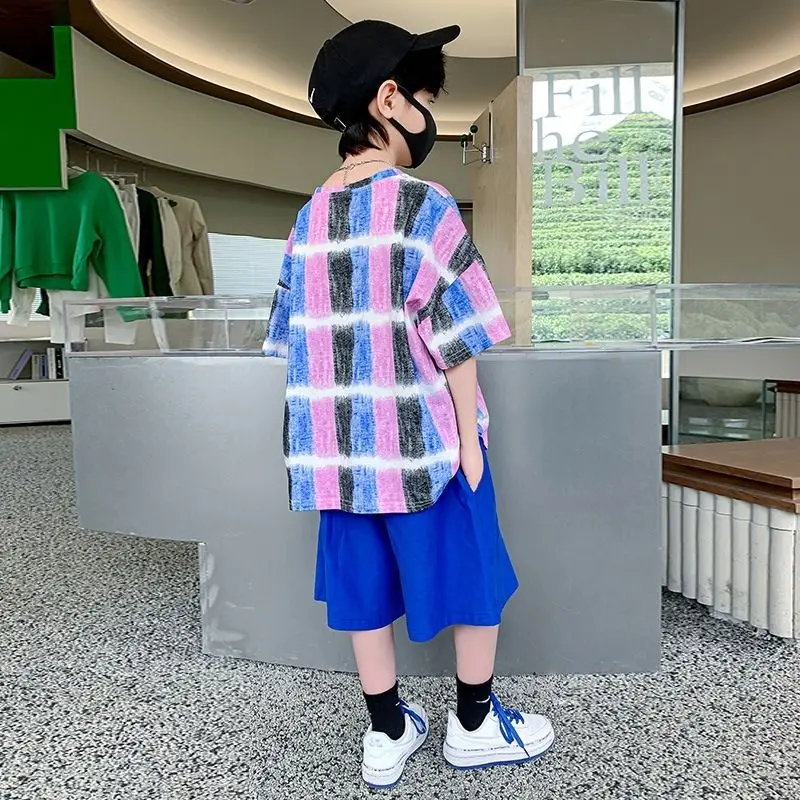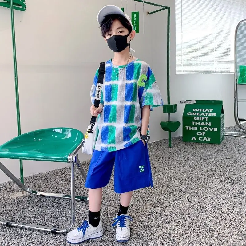 Одежда для мальчиков Летние детские шорты с рукавами Мультяшный костюм От 5 до 14 лет Хлопковый комплект для маленьких девочек 2023 Новая корейская детская верхняя одежда для мальчиков