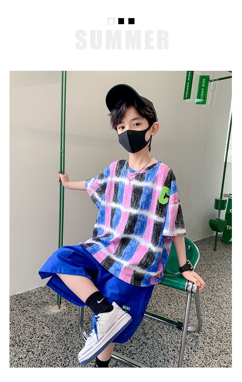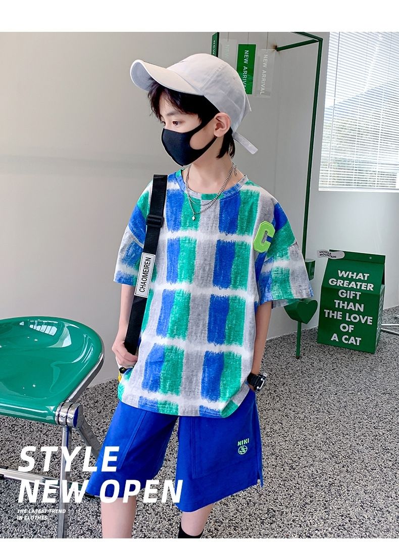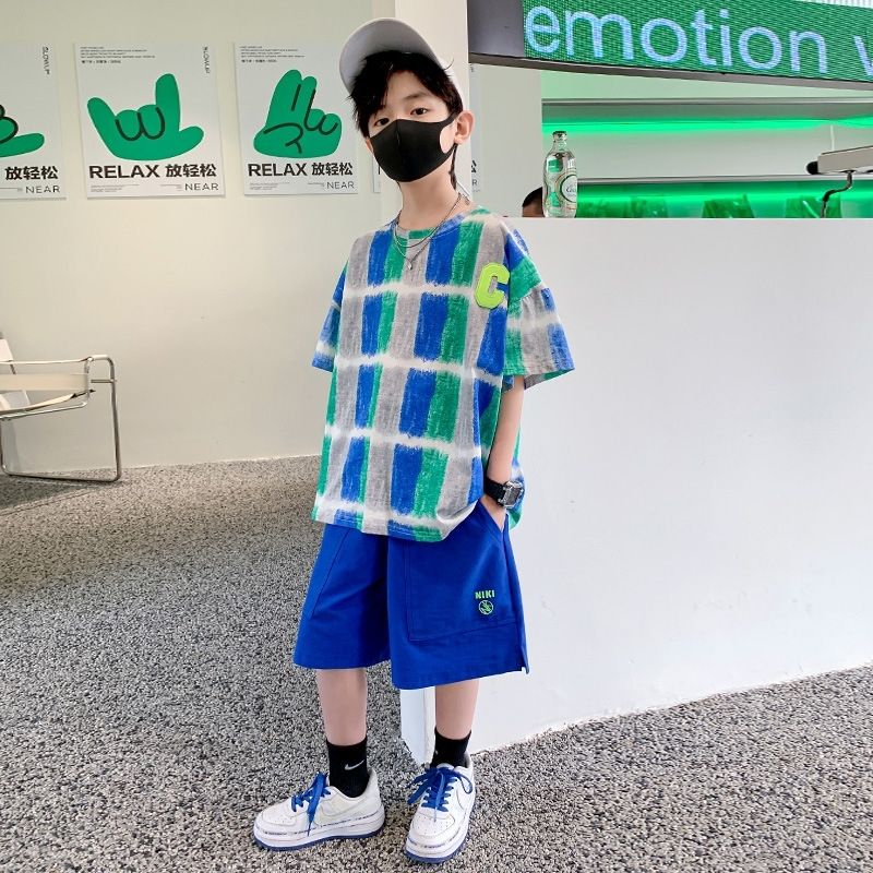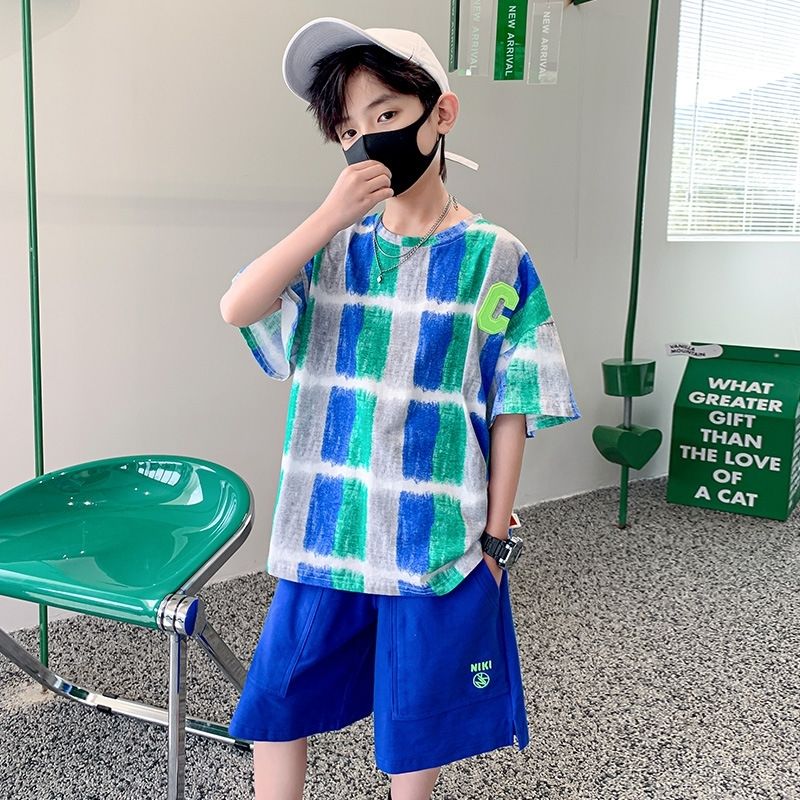 Одежда для мальчиков Летние детские шорты с рукавами Мультяшный костюм От 5 до 14 лет Хлопковый комплект для маленьких девочек 2023 Новая корейская детская верхняя одежда для мальчиков