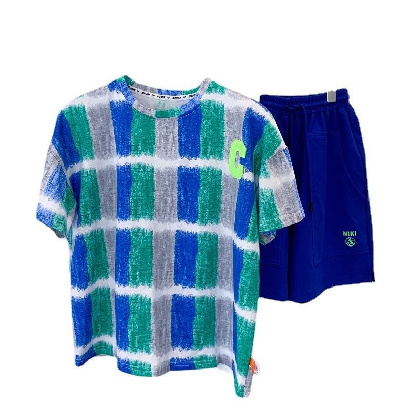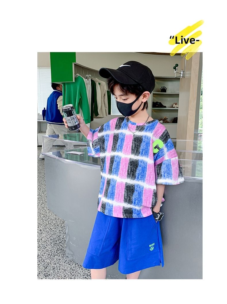 Одежда для мальчиков, летние детские шорты, рукава, мультяшный костюм, женский хлопковый комплект для девочек, новинка 2023, корейская детская верхняя одежда для мальчиков