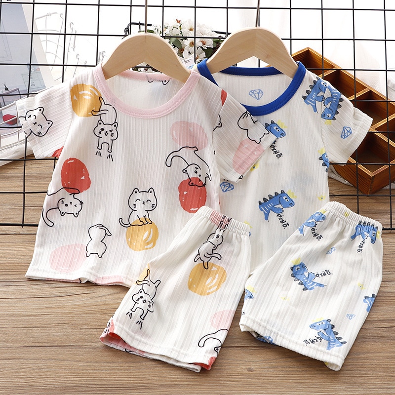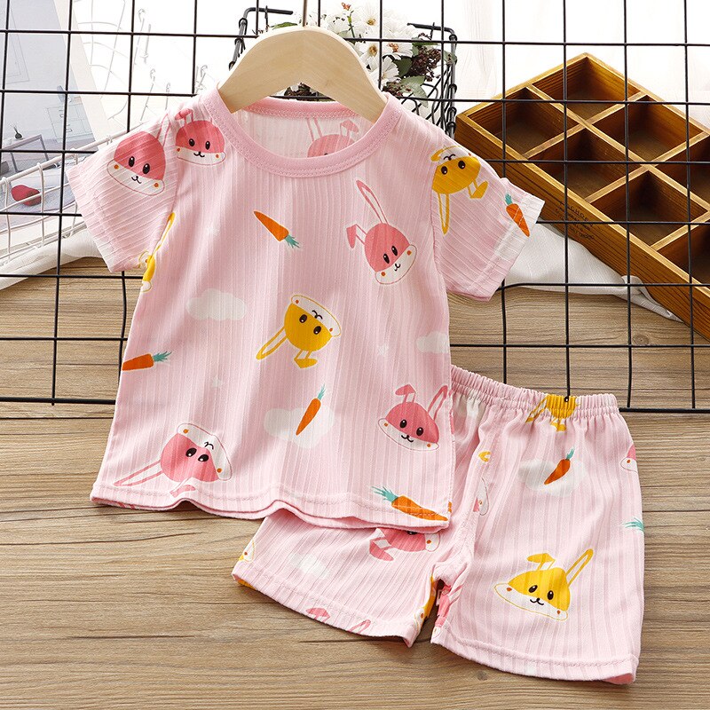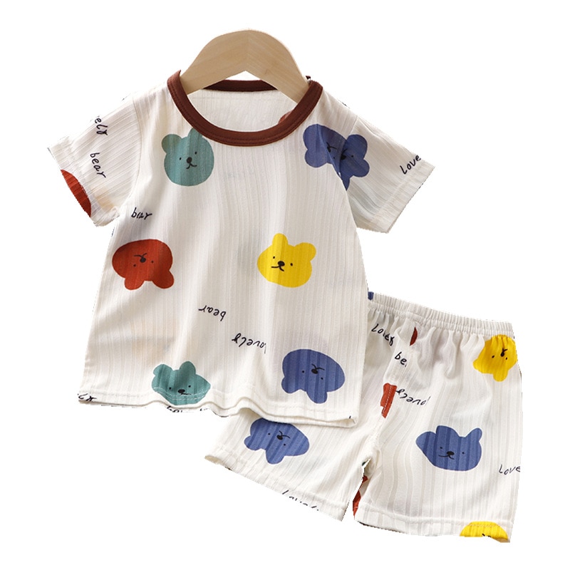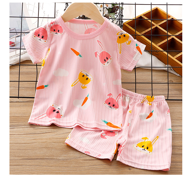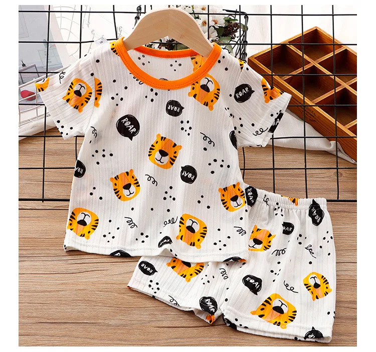 Одежда для маленьких девочек, летние футболки с коротким рукавом и штаны, комплект из мягкого хлопка с принтом сердечек, домашняя одежда, Корейская Повседневная Пижама 2023