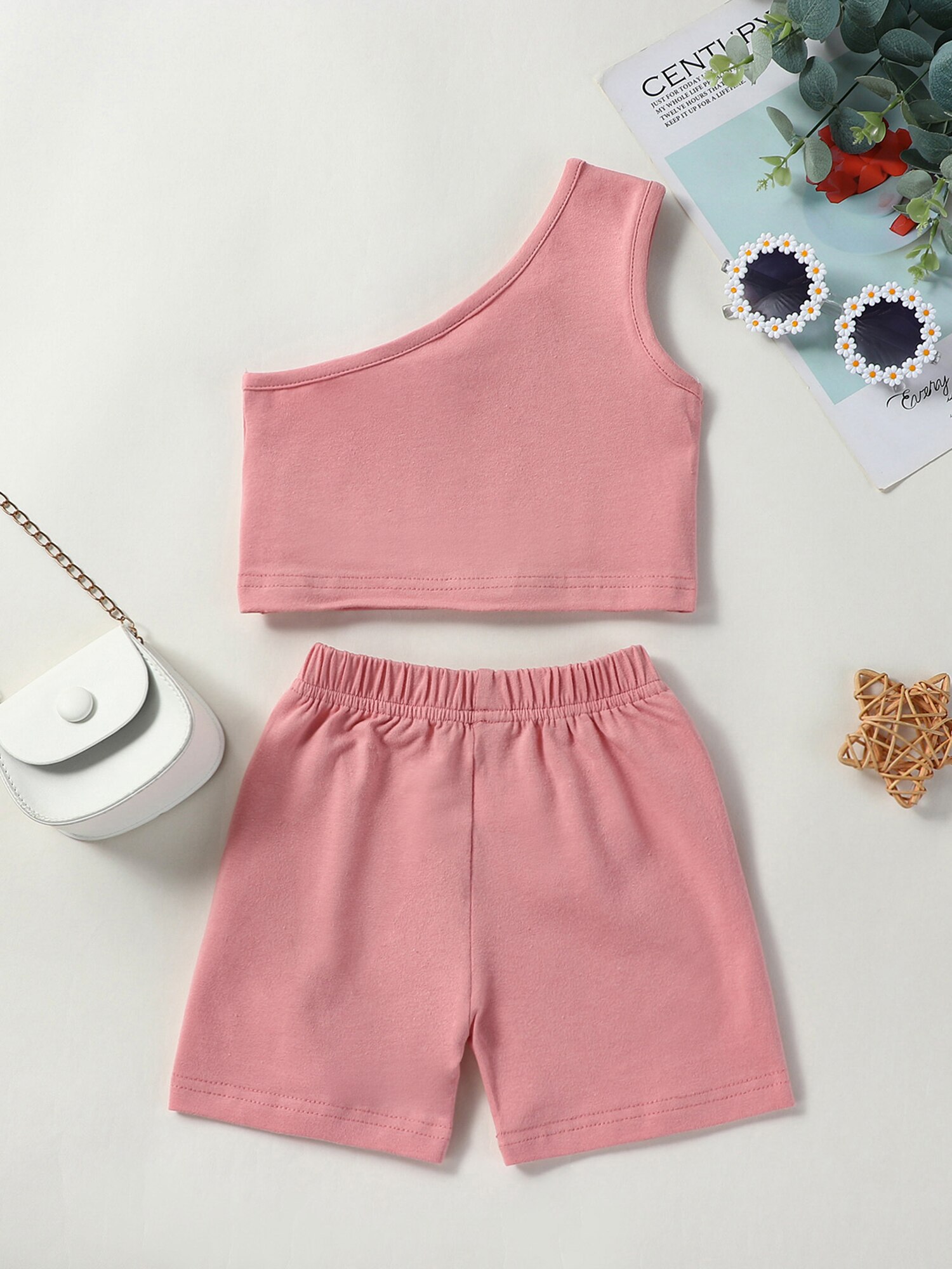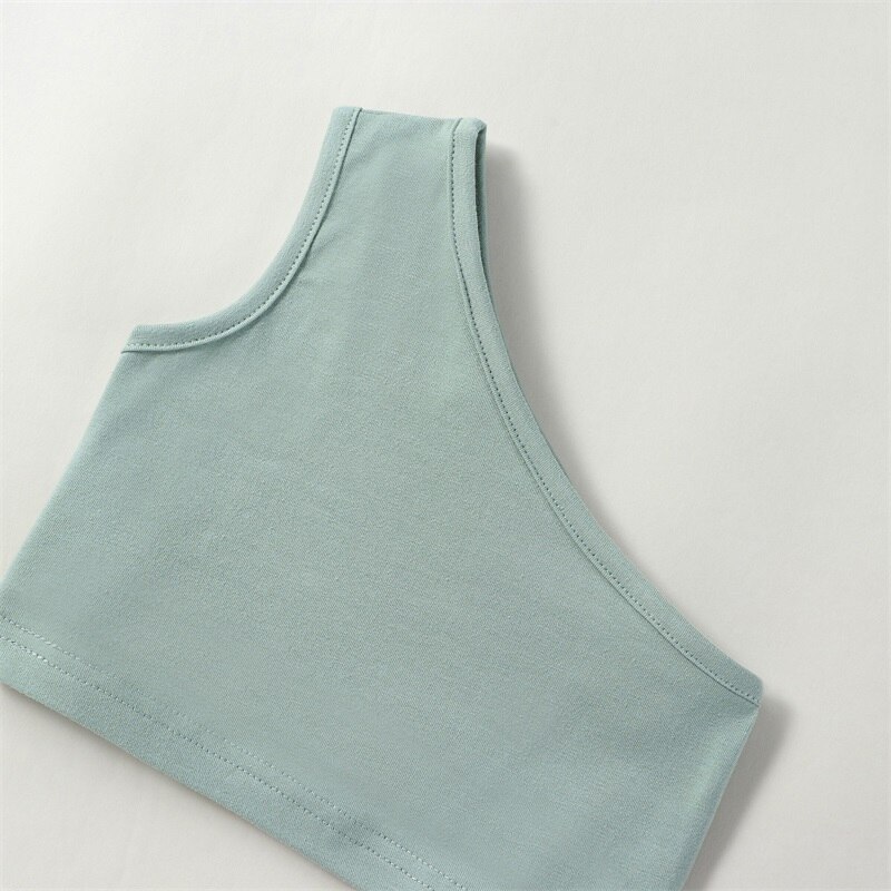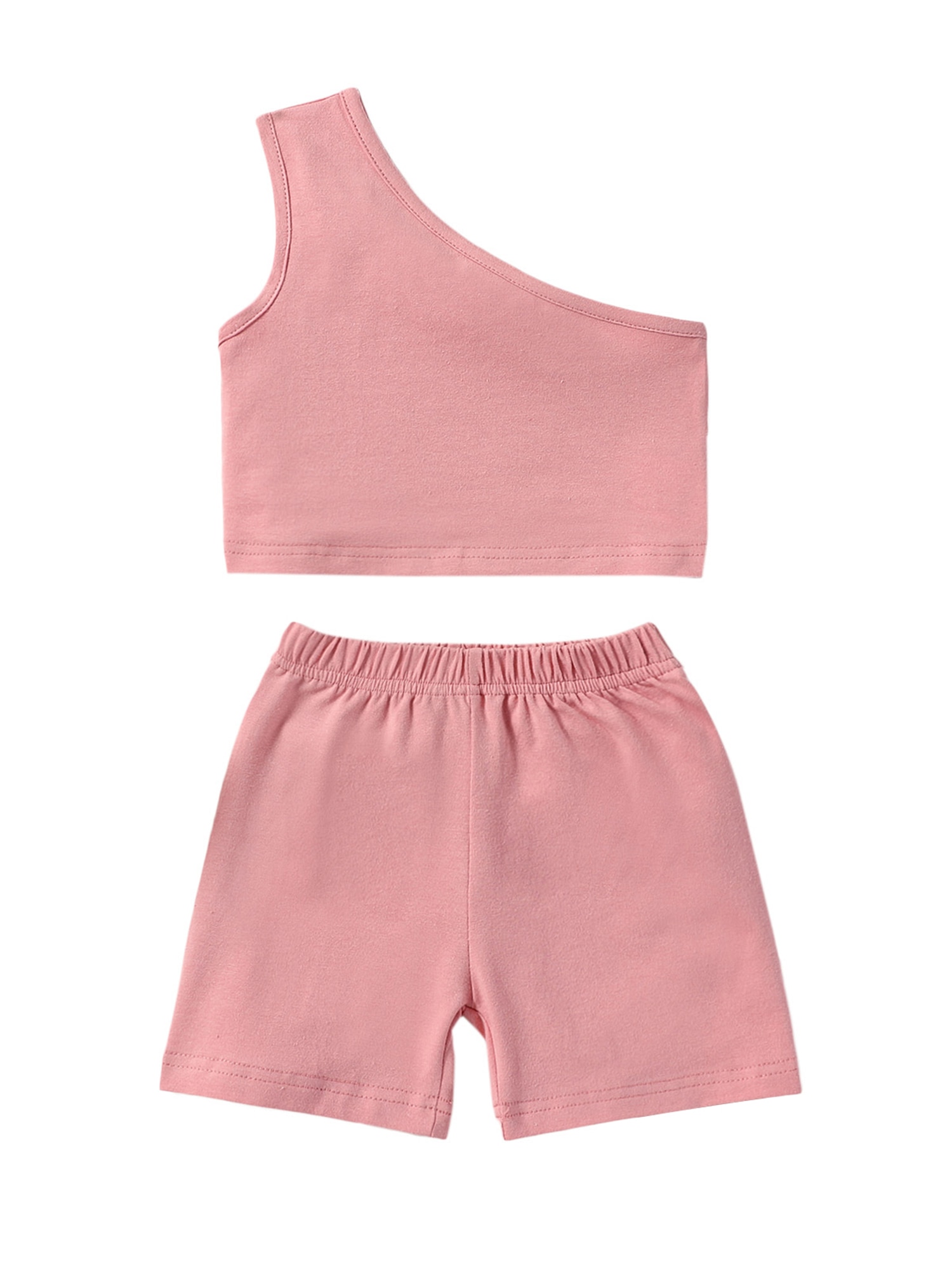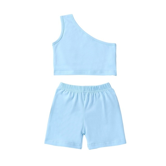 Одежда для маленьких девочек на одно плечо, однотонная майка, верх, 2 шт., повседневный летний наряд