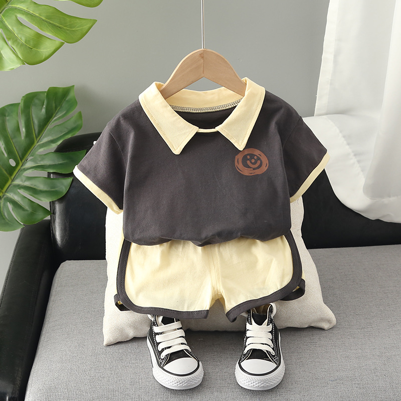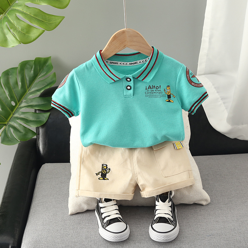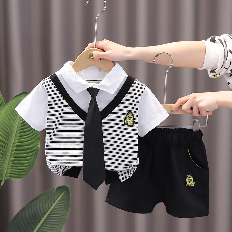 Одежда для маленьких мальчиков 2023, Летний Новый Стиль, костюм с коротким рукавом, полосатая хлопковая рубашка-поло, подходит для детей