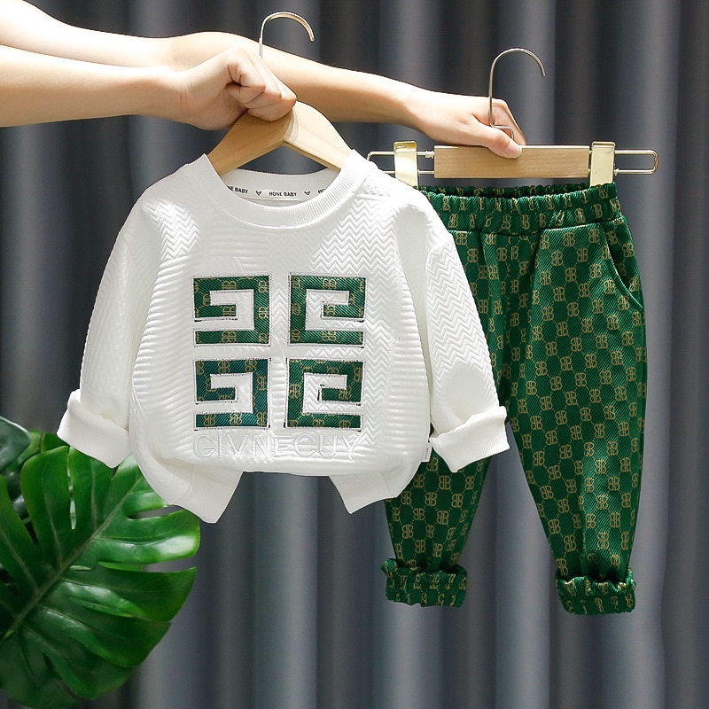 Одежда для маленьких мальчиков и девочек, весна-осень, футболка с длинным рукавом и круглым вырезом, брюки, костюм из двух предметов для детей