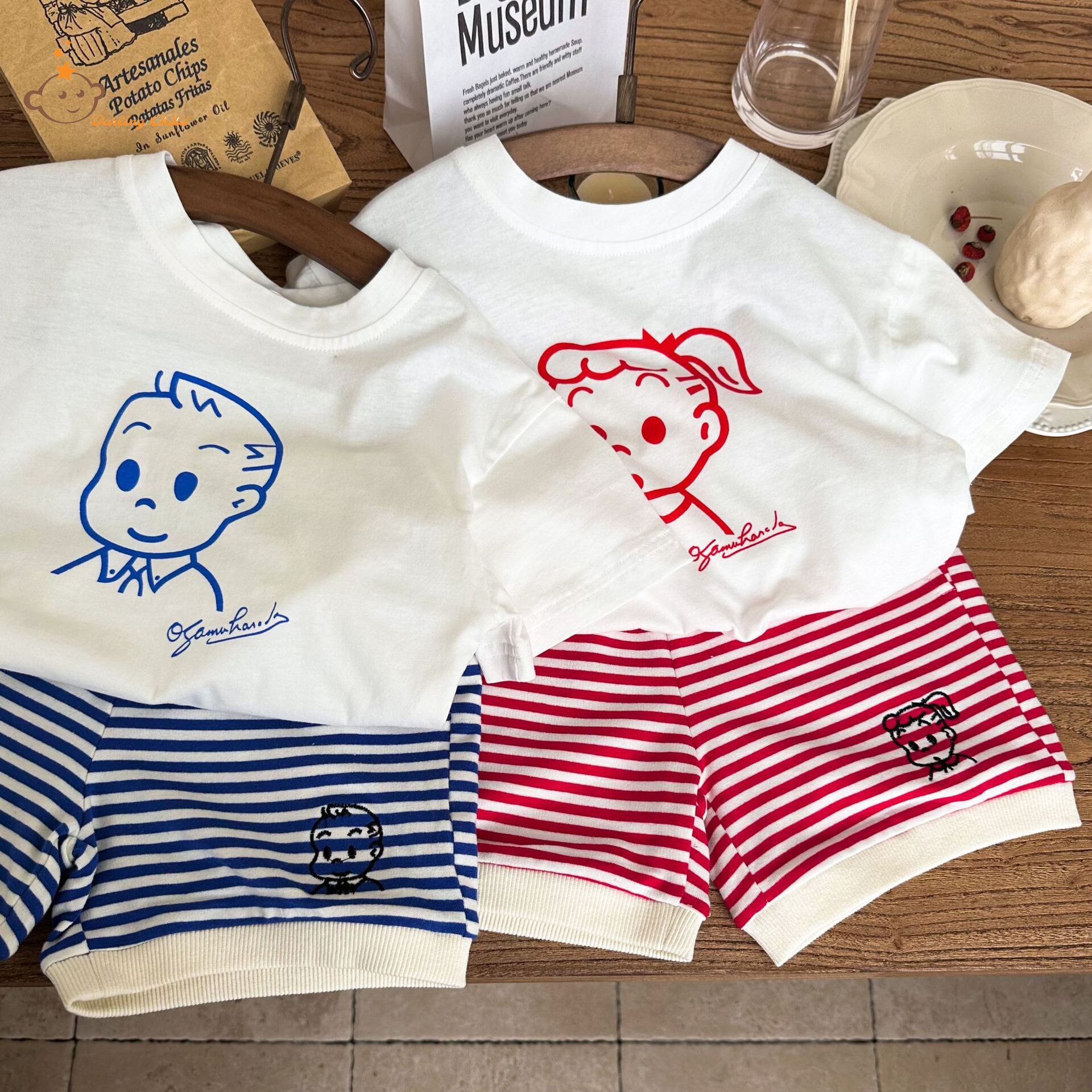 Одежда для маленьких мальчиков, комплекты для брата и сестры, топ + штаны, шорты для мальчиков, костюм, корейская детская одежда