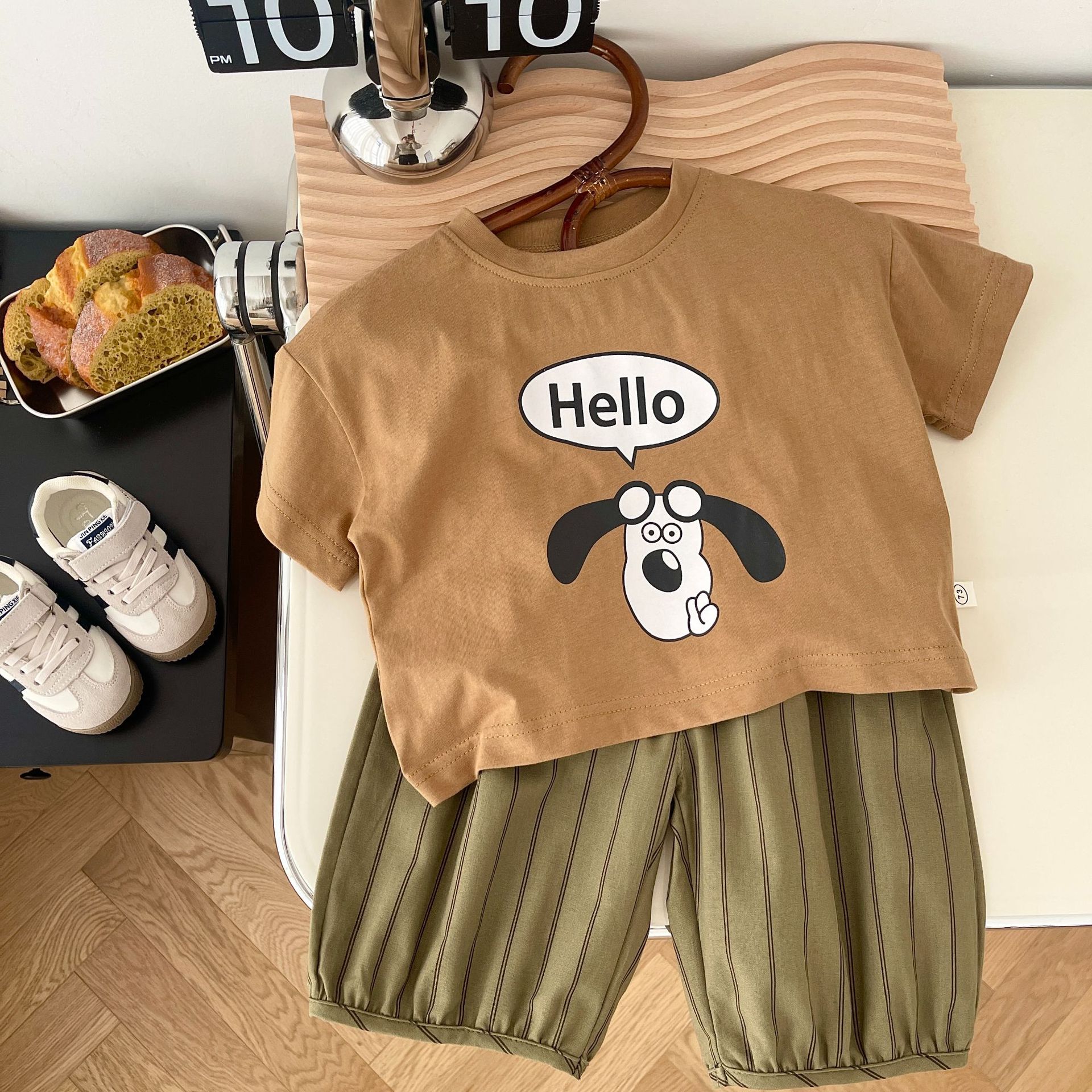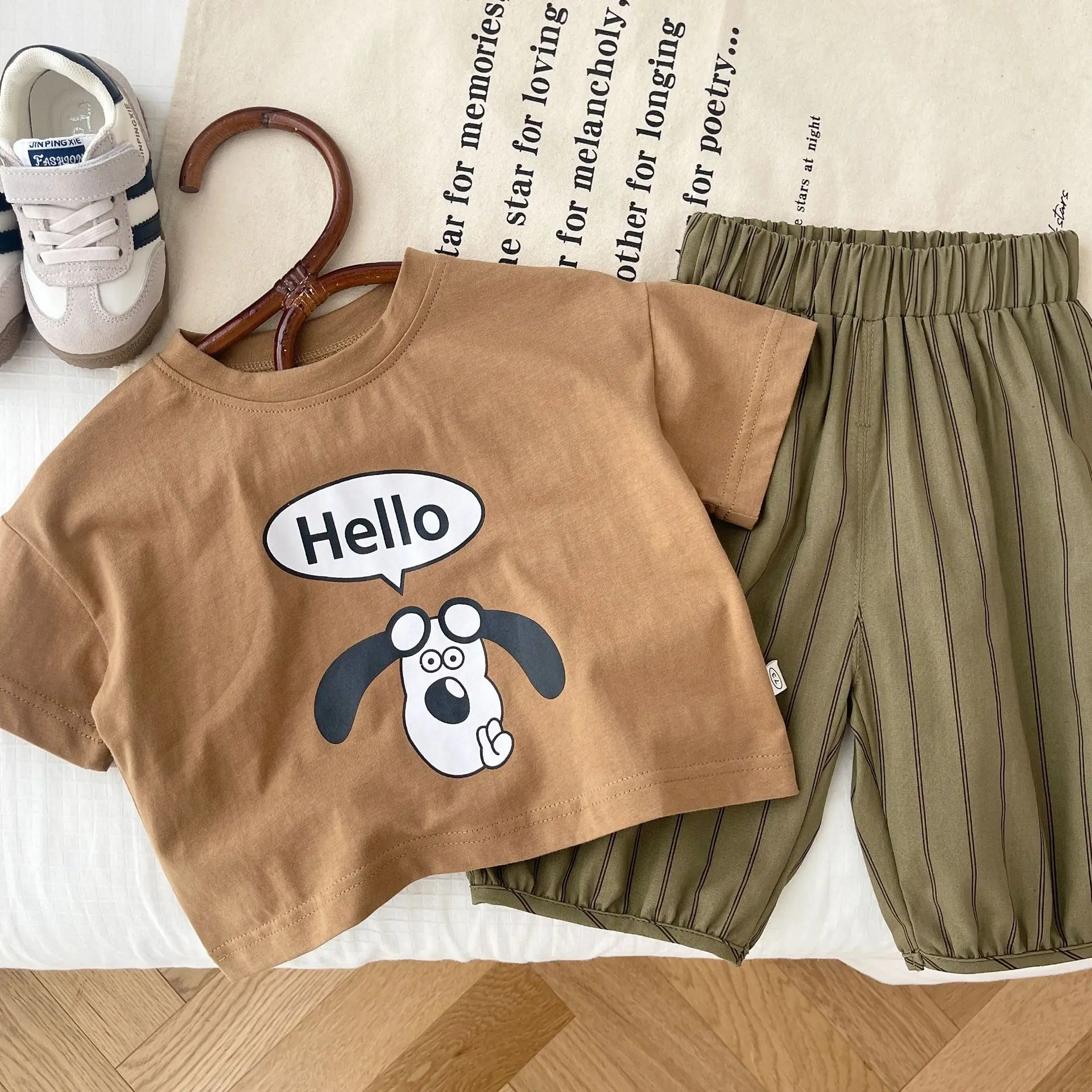 Одежда для маленьких мальчиков, костюм для щенка, летняя футболка для мальчиков с надписью, однотонные брюки, детская одежда