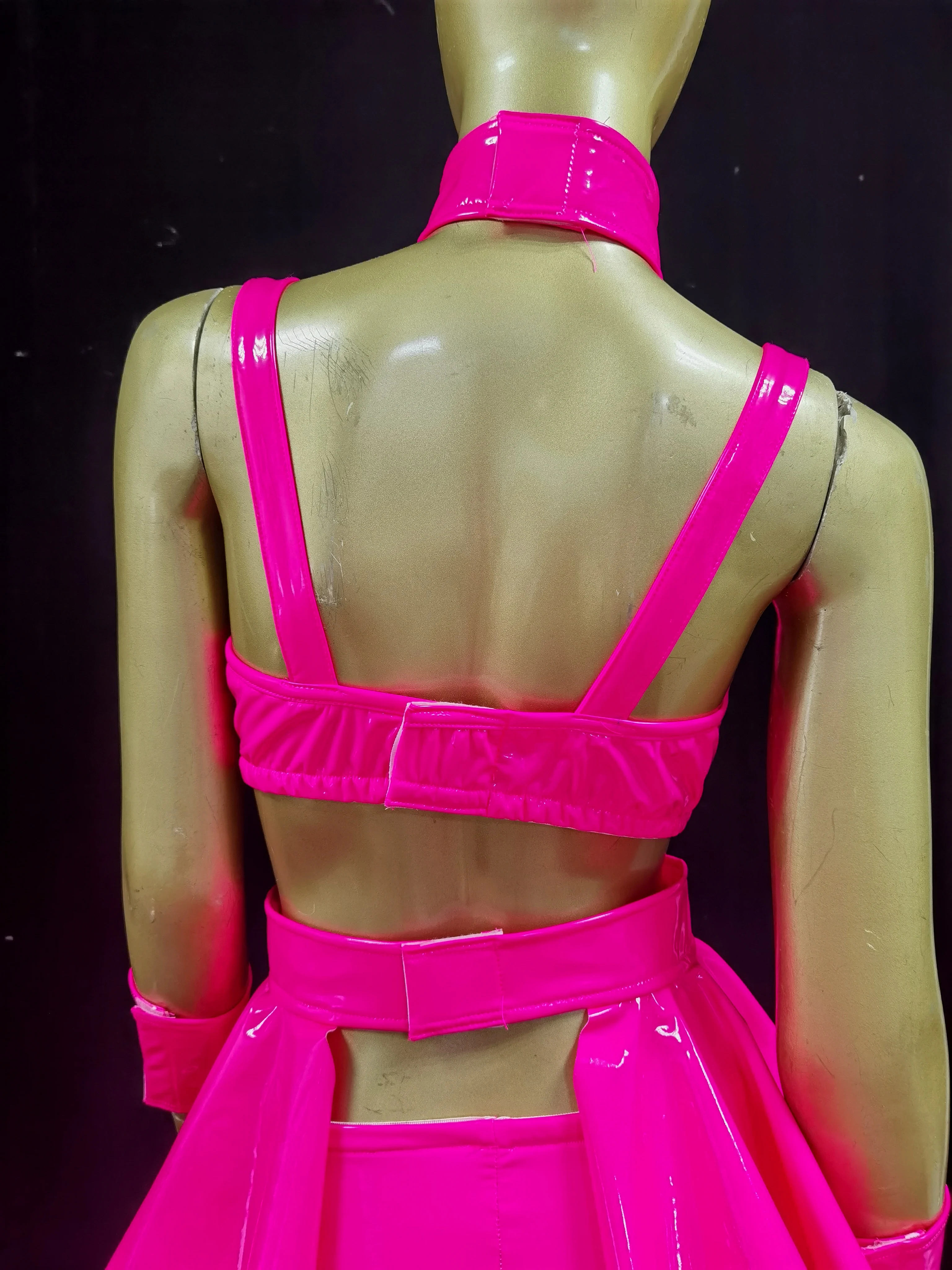 Одежда для выступления в баре, сексуальный флуоресцентный эластичный лакированный кожаный костюм, женская одежда для певицы