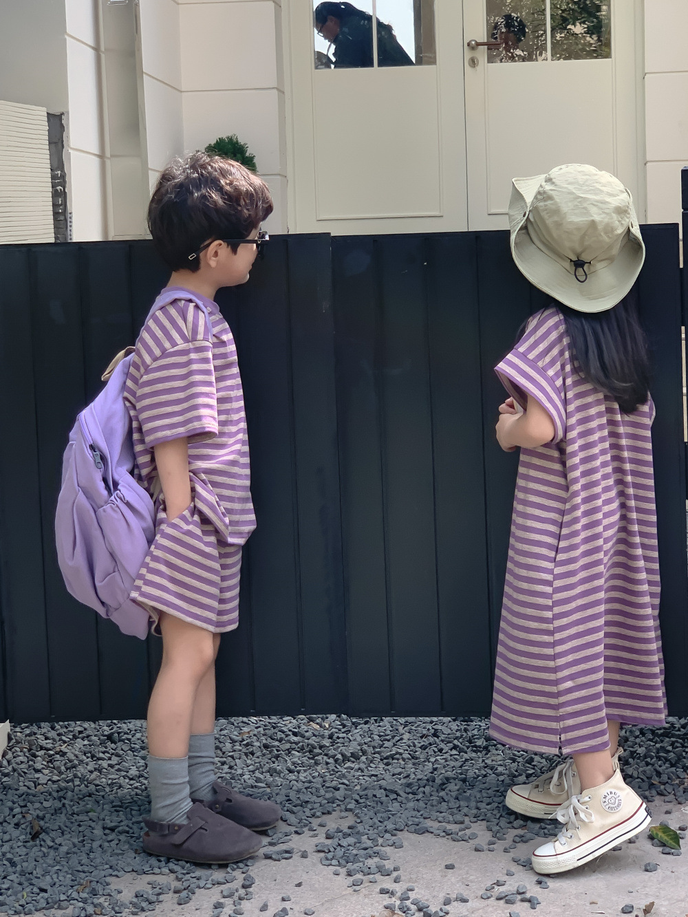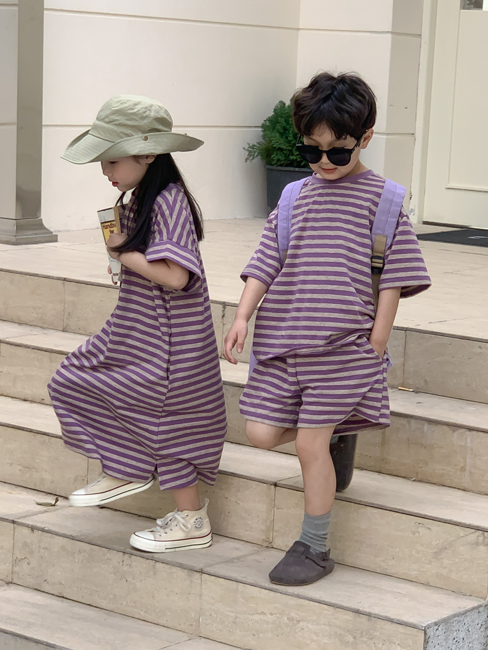 Подходящая семейная одежда Весна-Лето Детский комплект для мальчиков и девочек Мягкое хлопковое платье в полоску Платье для девочек Одежда для сестер
