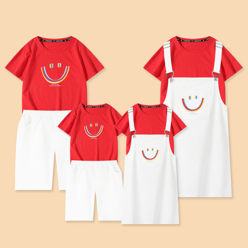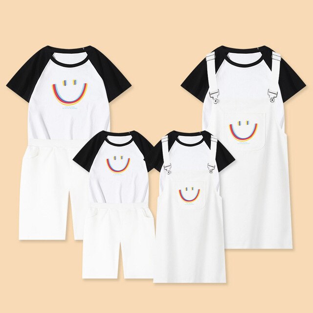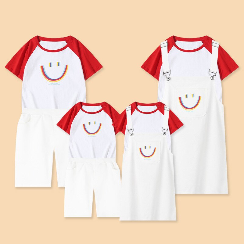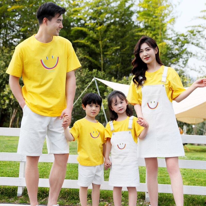 Семейный комплект для мамы, дочки, мамы, папы, сына, Одинаковая одежда Комплекты с платьем на бретелях хлопковые рубашки летние футболки