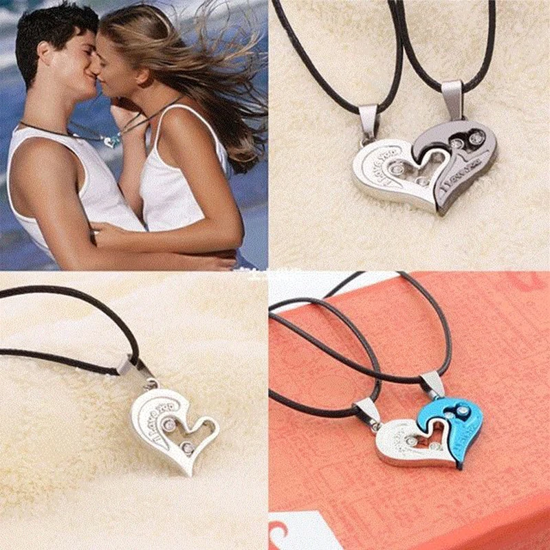 Одна пара ожерелье для пар «I Love You» подарок на день Святого Валентина ожерелье из нержавеющий кулон кожи в форме сердца цепочка для влюбленных