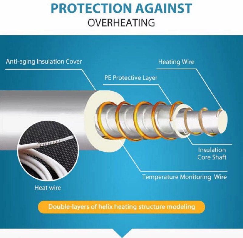 (3) Защита от перегрева полный размер двойной стороне ткани новый цвет дополнительный мягкий ETL одеяло Электрический нагреватель: двойная спираль горячей линии для этого продукта, который может отличаться от обычной однослойной спиральной горячей проволоки для волос. На картинке мы видим, что есть 2 комплекта Металлических проводов, Нагревательный провод во внутреннем слое и провод контроля температуры в другом слое, эта защита значительно повышает безопасность продукта.