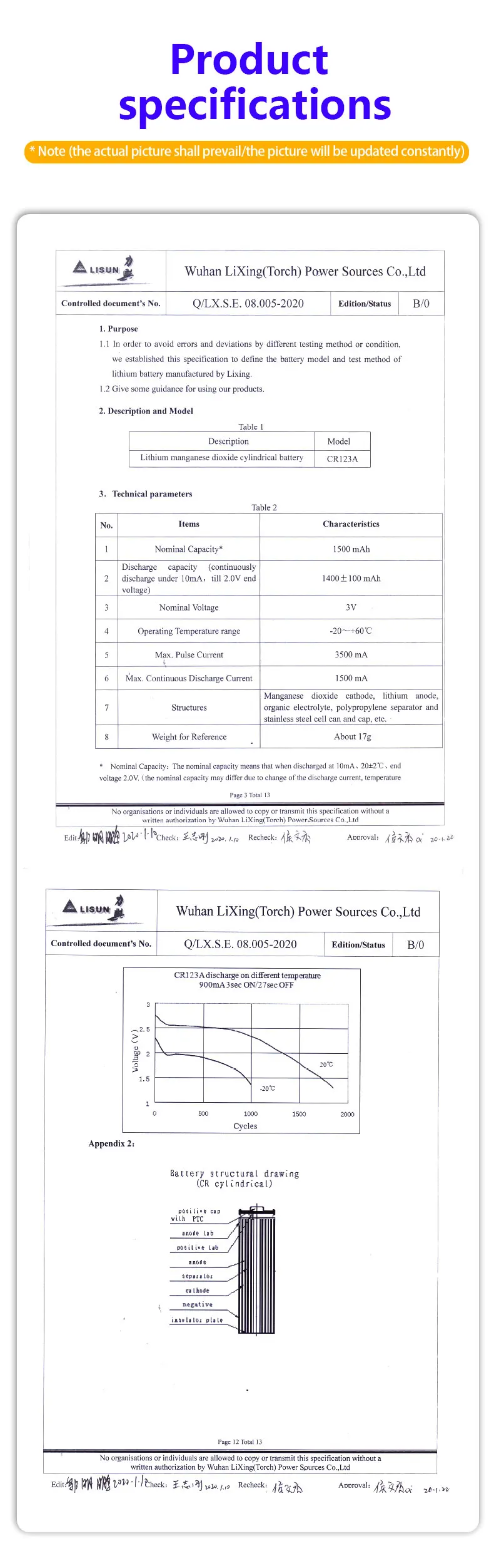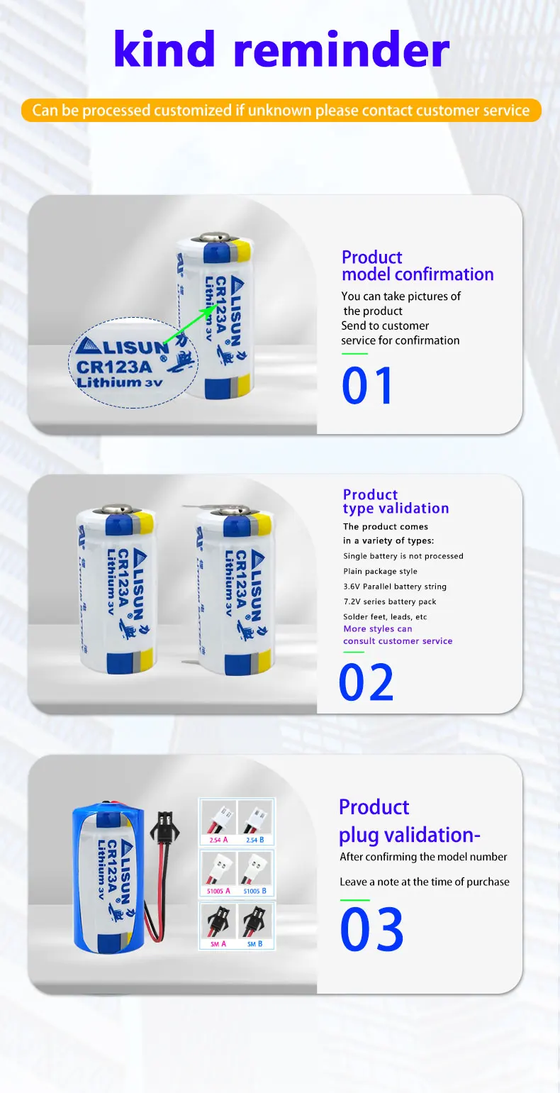 Одноразовая литий-марганцевая батарея LISUN CR123A 3 в, интеллектуальный счетчик воды и электроэнергии, дымовая сигнализация, не перезаряжаемый