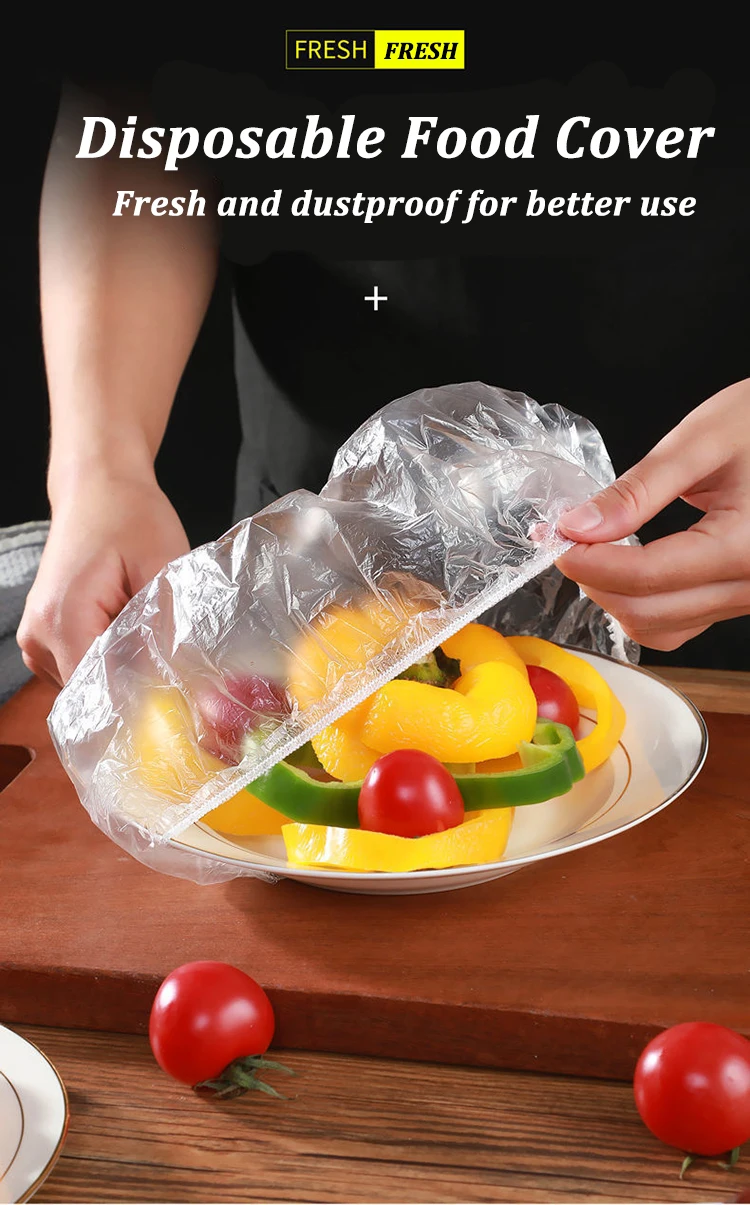 Одноразовые пластиковые крышки для еды, Эластичные крышки для пищевых продуктов, пакеты для хранения фруктовых чашек, чашки для кухни, свежие