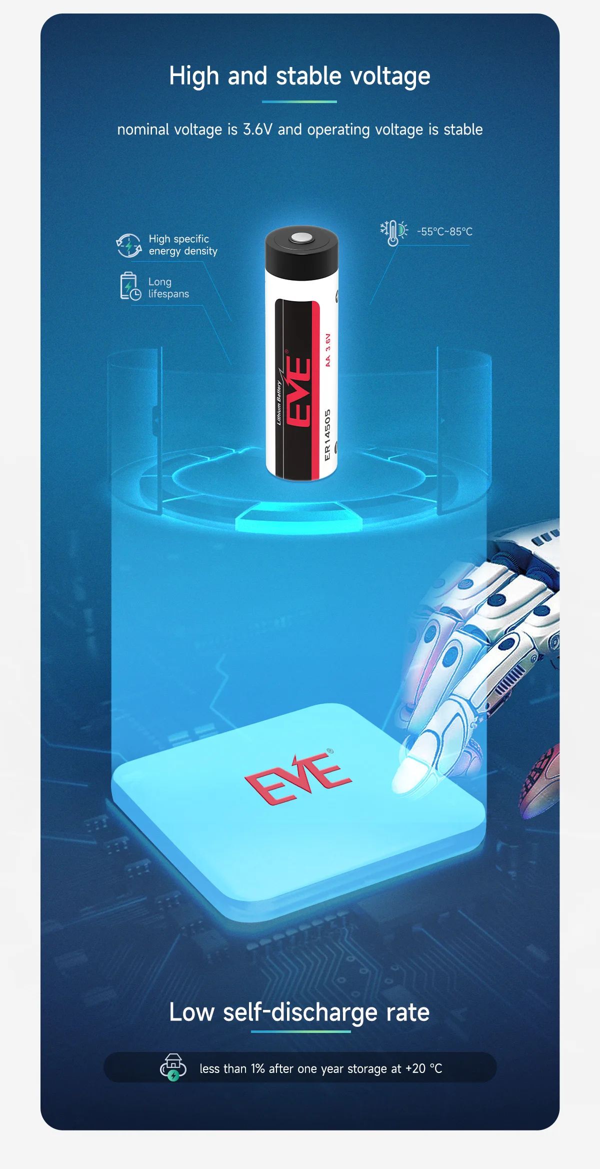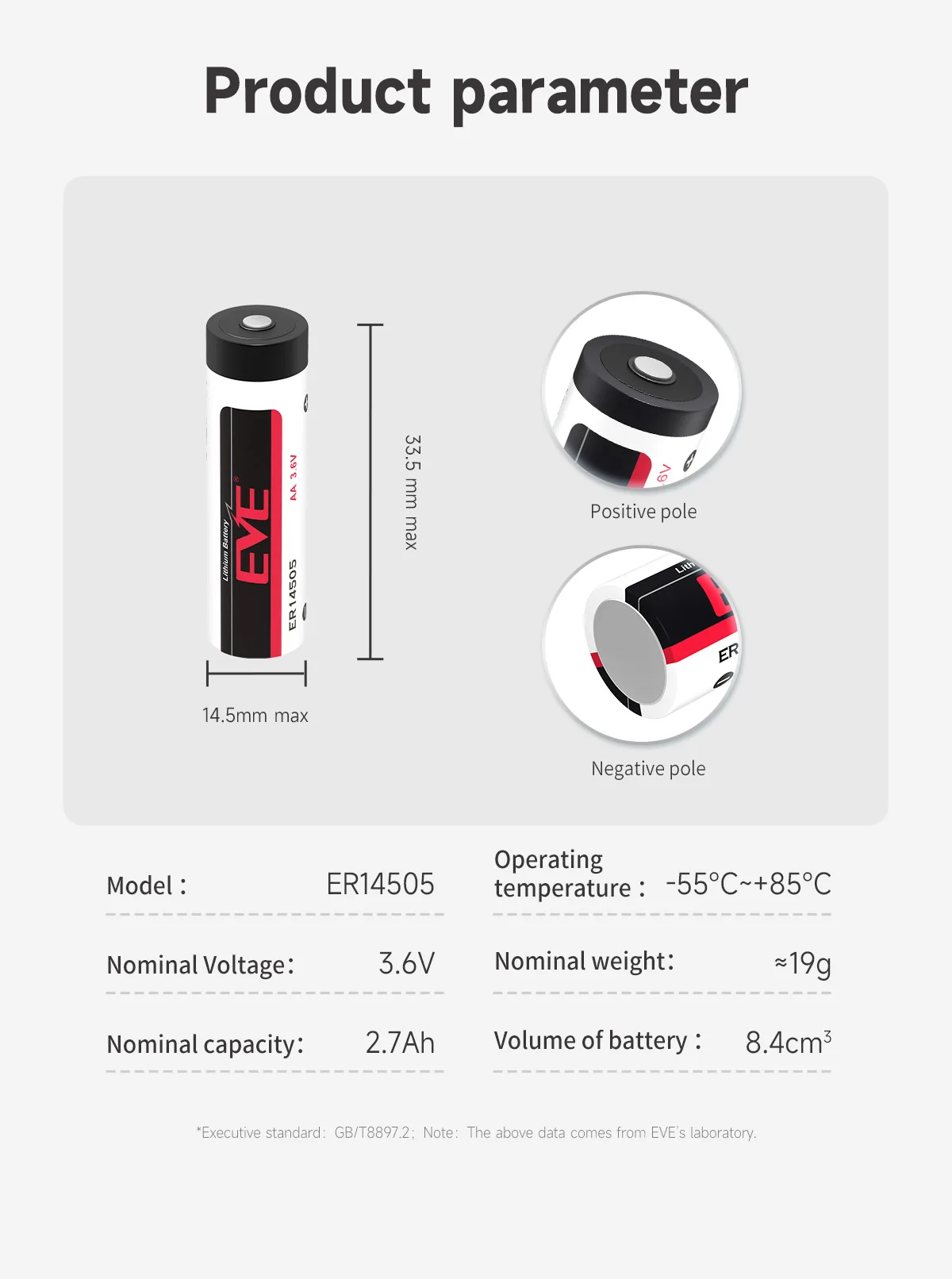 Одноразовые батареи EVE ER14505, 3,6 В, литий-ионная батарея 2700 мАч, AA, Первичная литиевая батарея для автоматических умных измерителей