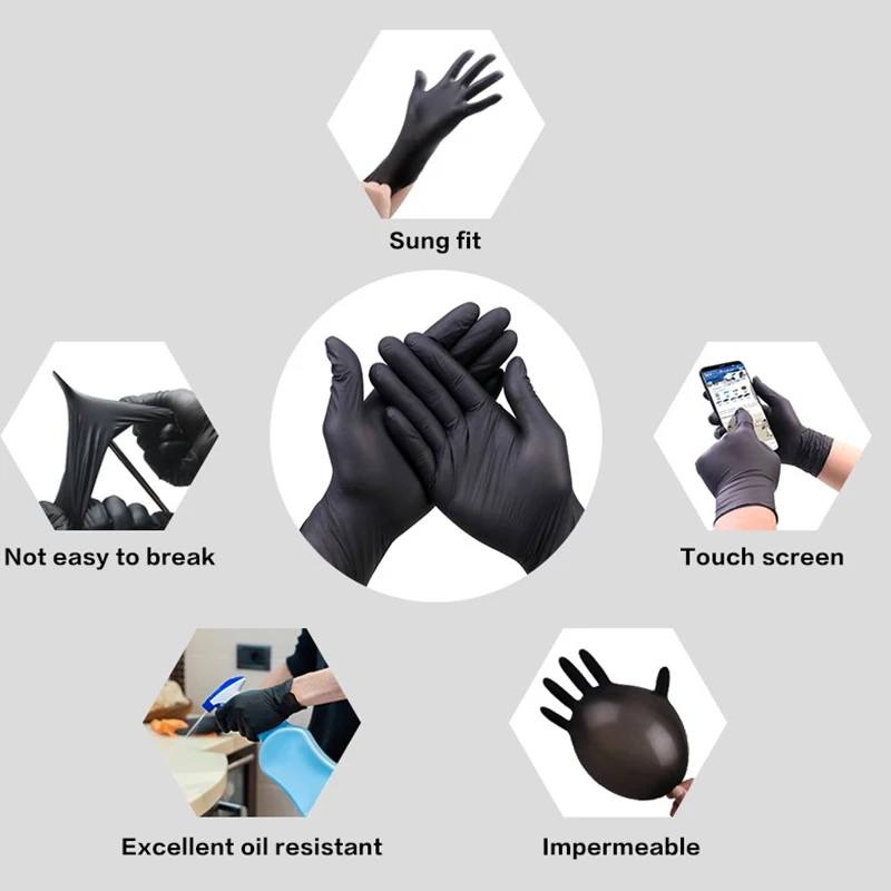 Черные нитриловые перчатки кухонные одноразовые Порошковые латексные перчатки