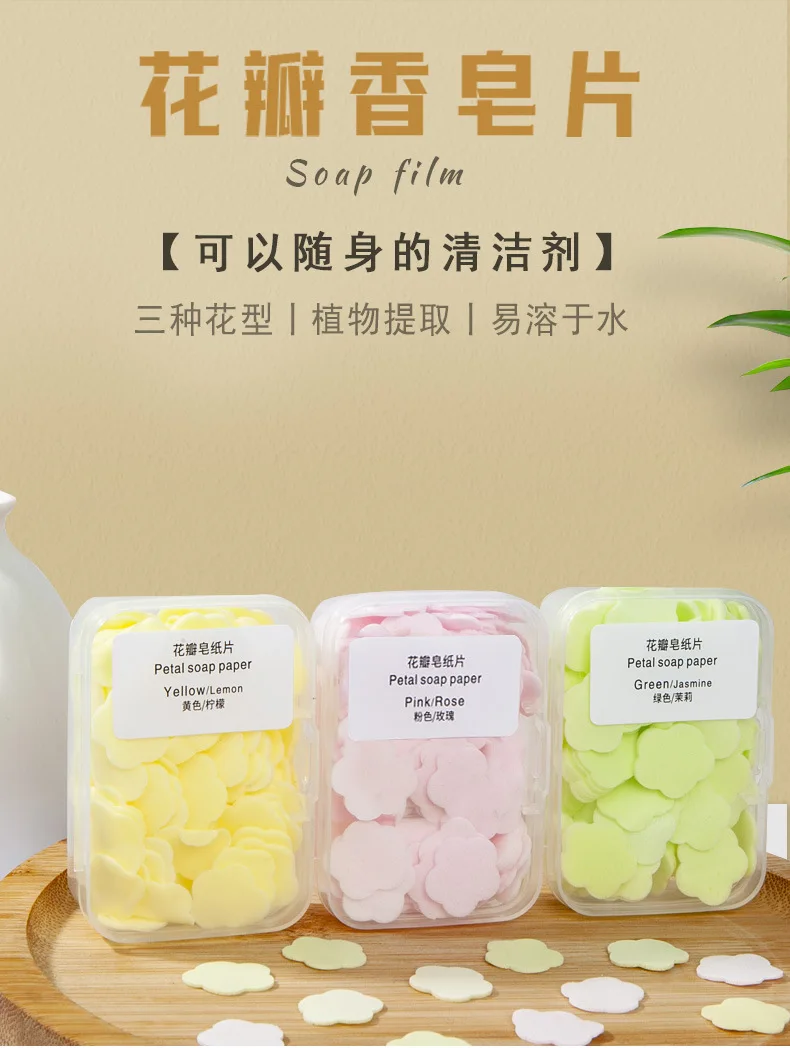 Одноразовые мыльные таблетки, портативная бумага для мыла, антибактериальные мини-таблетки для мытья рук с лепестками для учеников и детей