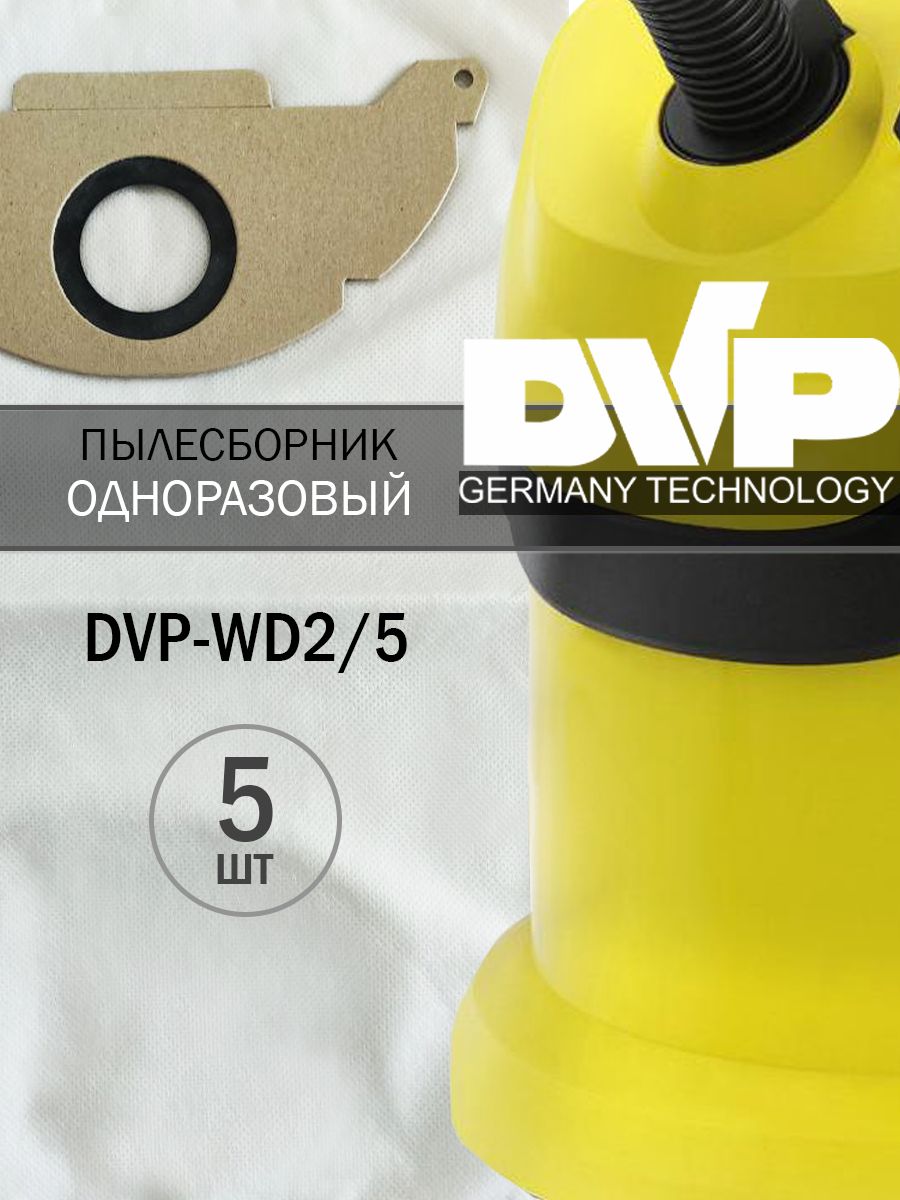 Одноразовый мешок пылесборник DVP-WD2/5 для пылесоса (Керхер) KARCHER WD 2, MV 2, WD 2.200 5 штук.