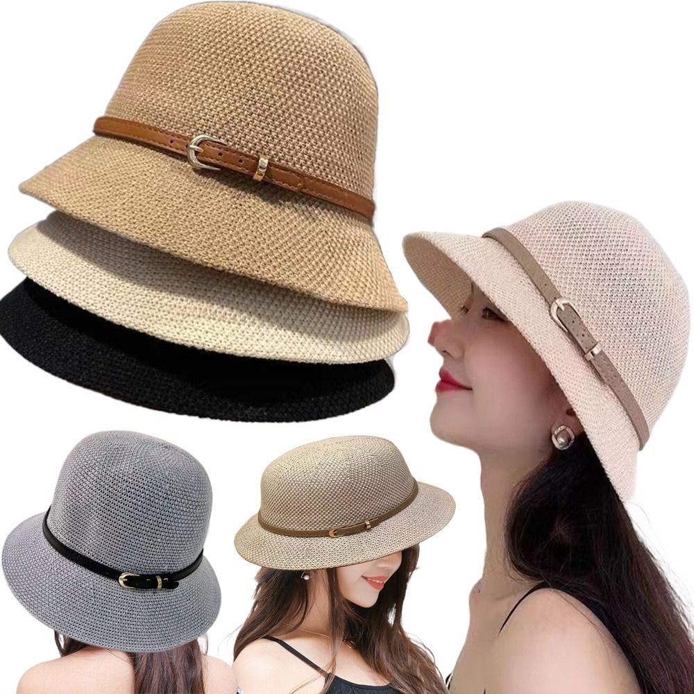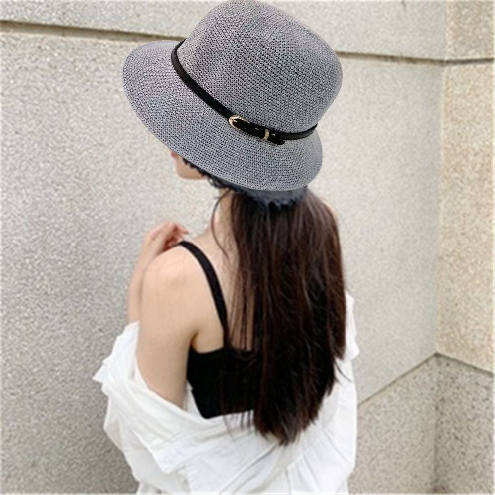 Однотонная плетеная Панама для женщин, летняя дышащая пляжная шапка с вырезами, вязаная женская шляпа-козырек от солнца