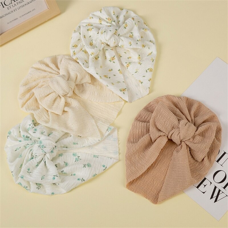 Однотонная Шапка-тюрбан для детской больницы, Шапка-бини, шапочка с большим бантом для маленьких девочек, малышей, детская легкая шапка P31B