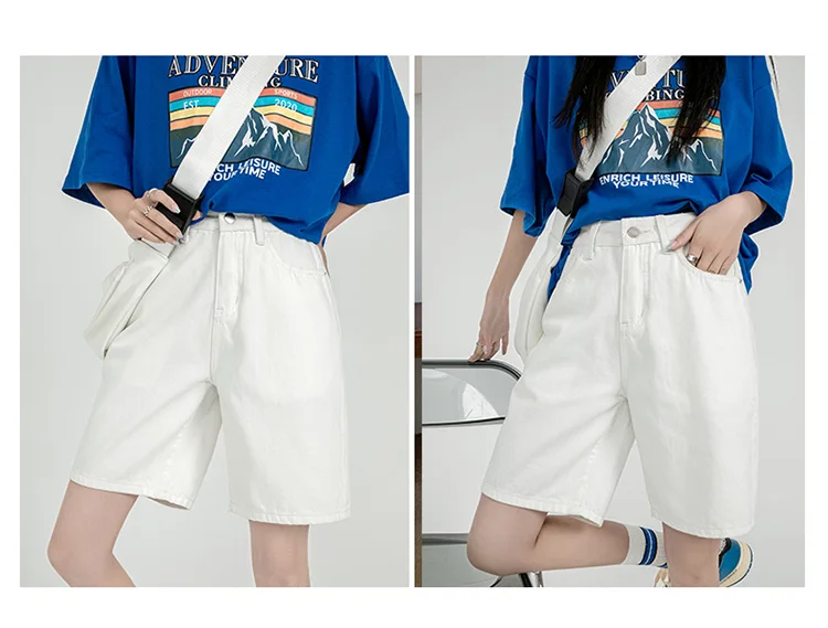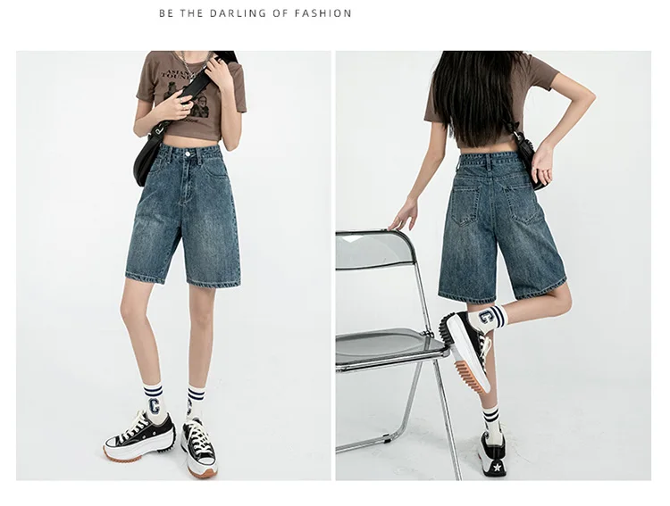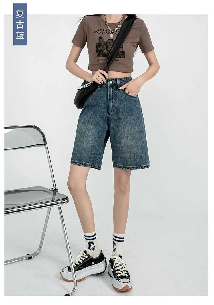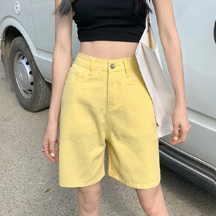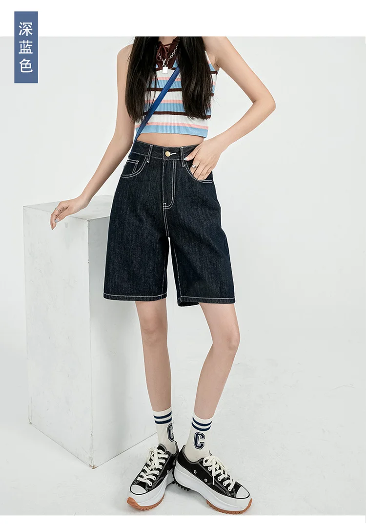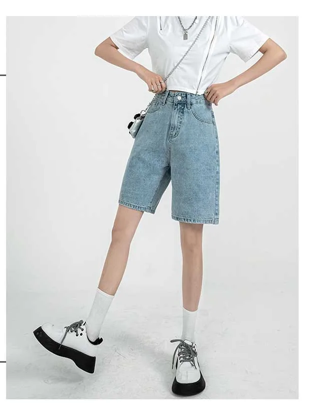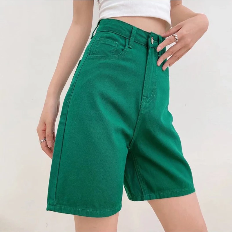Однотонные джинсовые шорты до колен с высокой талией, женские повседневные шорты-бойфренды с высокой талией и широкими штанинами, джинсы