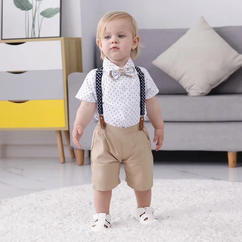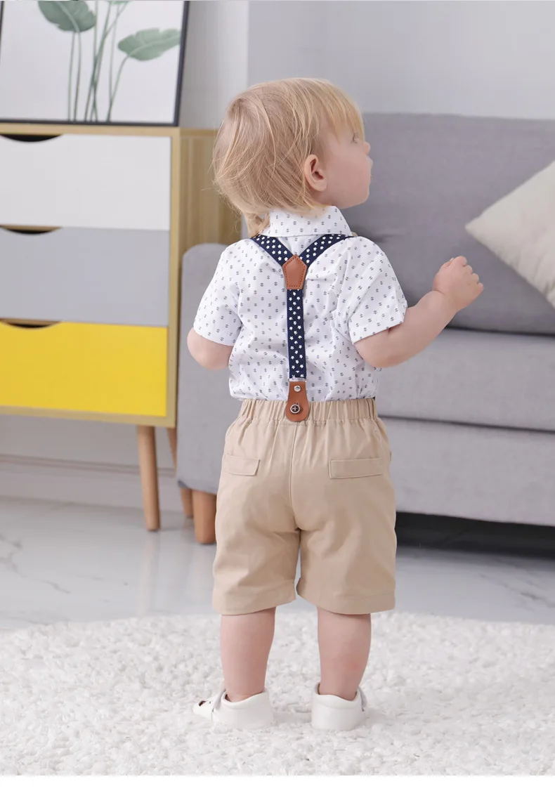 Формальное платье для новорожденных мальчиков, хлопковый комбинезон в полоску + комплекты подтяжек, модельная Одежда для мальчиков, свадебная одежда От 0 до 4 лет