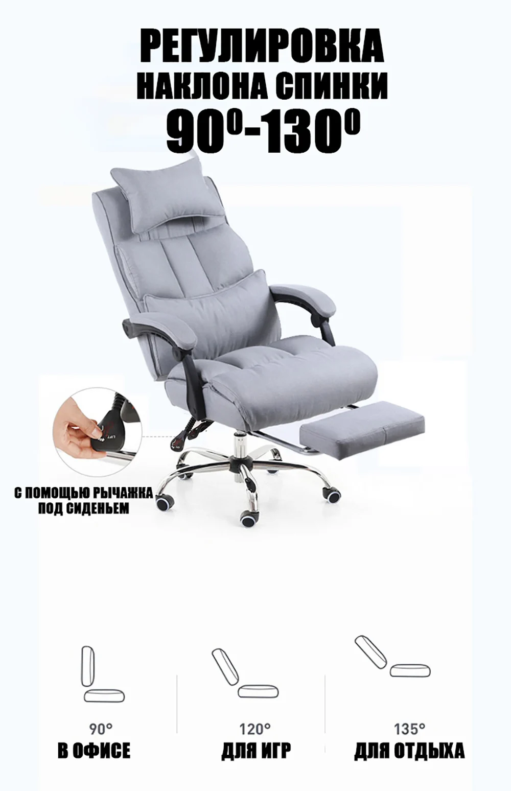 Офисное кресло GT Racer, регулировка высоты сиденья и наклона спинки, с/без подставки для ног, цвет серый/черный/бежевый