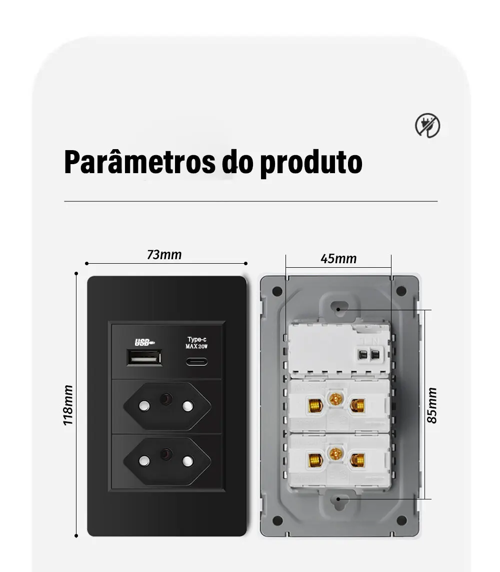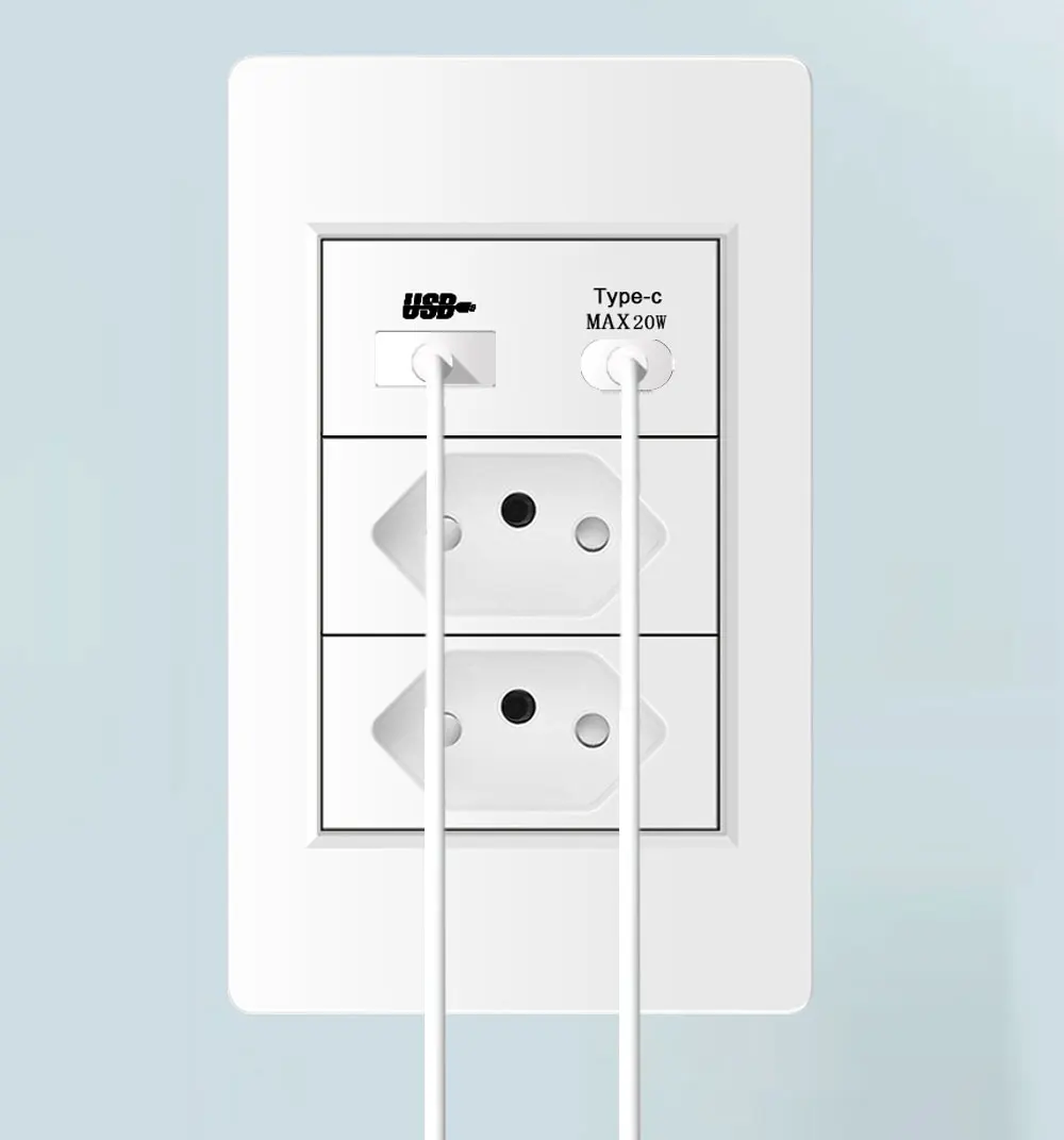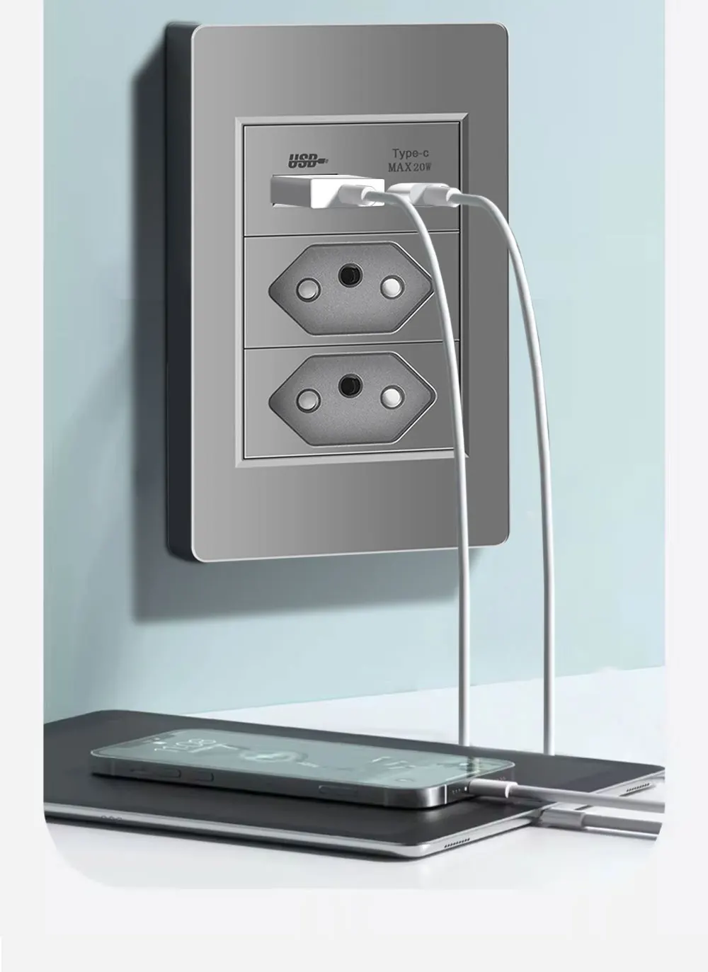 Огнестойкая панель из поликарбоната DELEFU, 10 А, 20 А, 118 мм, быстрая зарядка, USB Type-c, розетки бразильского стандарта, штепсельная вилка, белая, серая, черная, настенная розетка, переключатель