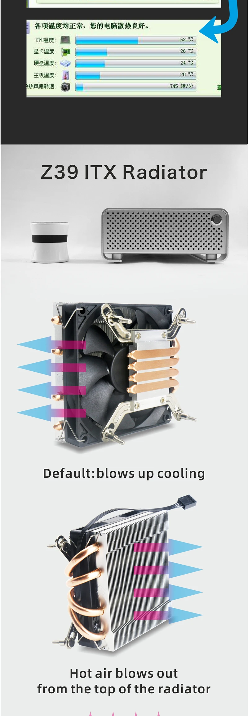 Охладитель ЦП METALFISH Z39 с цветным шим-вентилятором 9 см для компактной платформы 1700/1200/115x/AM5 Mini ITX