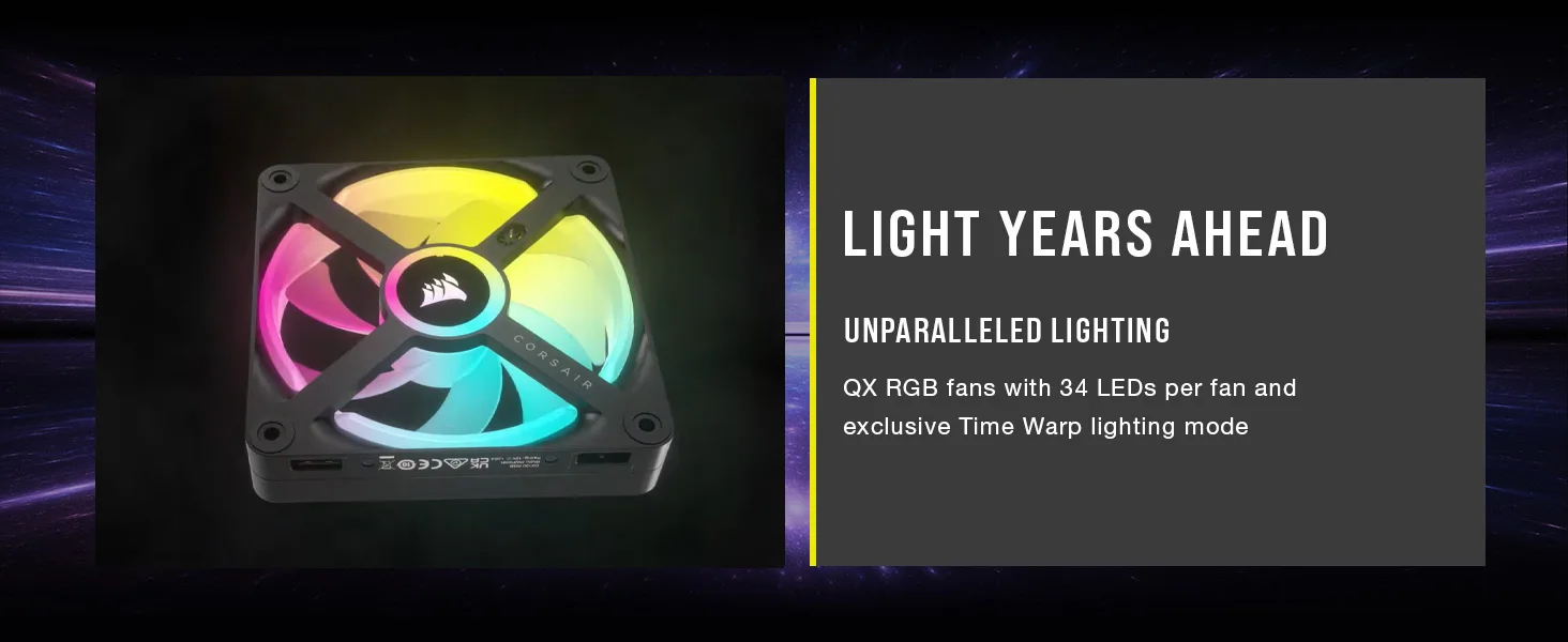 • Непревзойденное освещение с вентиляторами QX RGB: вентиляторы CORSAIR QX120 RGB PWM с запатентованным магнитным купольным подшипником обеспечивают мощный и тихий воздушный поток, предварительно установленный вдоль радиатора 360 мм, освещается удивительными 34 светодиодами RGB на вентилятор.