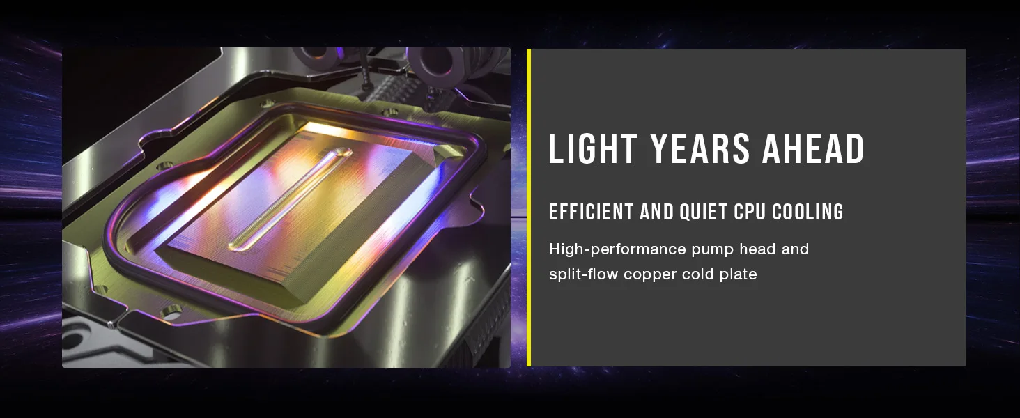 • Скрытые соединения для безупречного вида: конструкция скрытого соединения перемещает все соединения к концу радиатора, позволяя без отвлечения просматривать Блестящий насос 20 RGB LED.