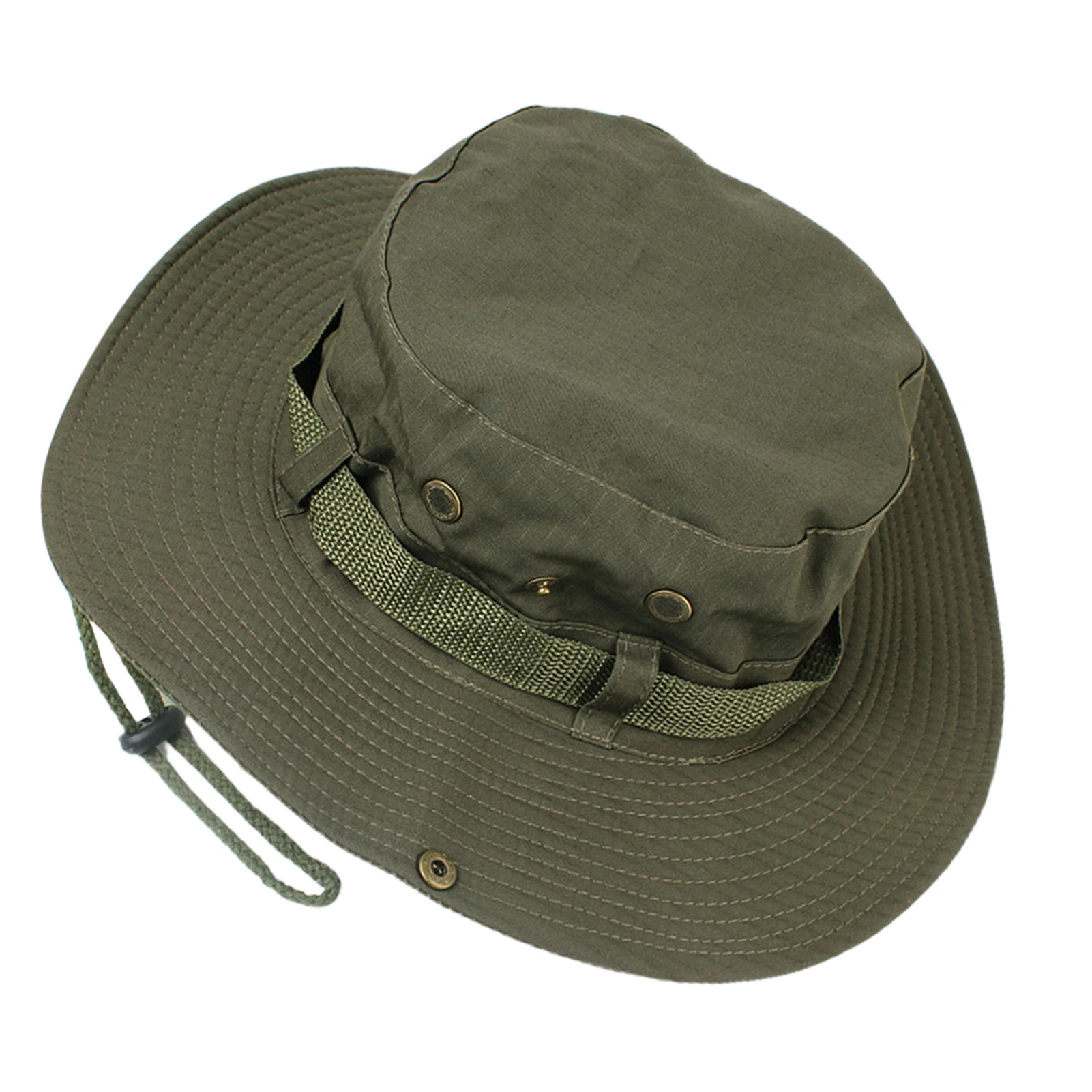 1. Рыболовная шляпа с широкими полями имеет шнурки, которые позволяют шляпе хорошо прилегать к голове.