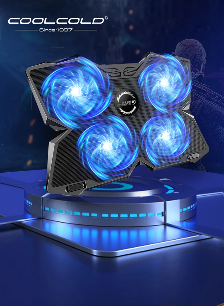 Охлаждающая подставка Coolcold для ноутбука, охлаждающая подставка для игрового ноутбука с четырьмя вентиляторами и 2 USB-портами для ноутбука 14-17 дюймов