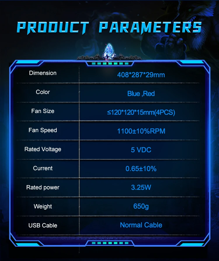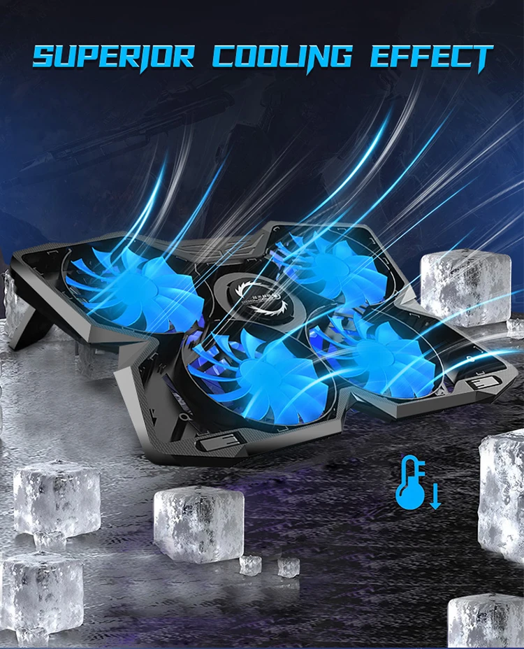 1. Высокая производительность охлаждения: 4 сильных вентилятора со светодиодом и два переключателя вентилятора могут быстро регулировать скорость вентилятора;