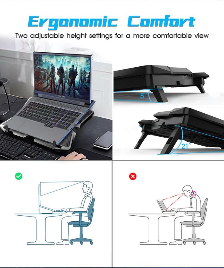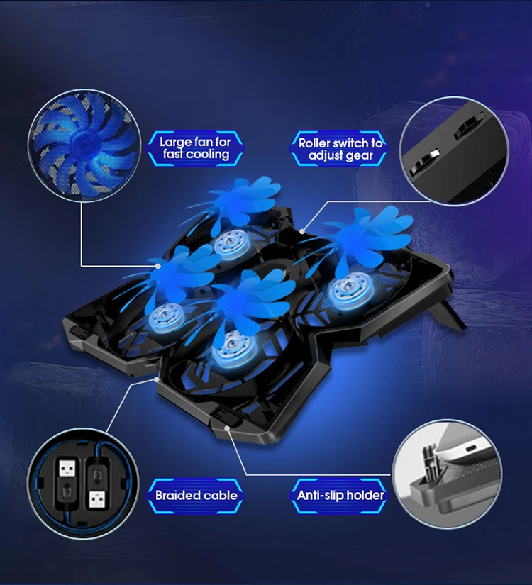 Охлаждающая подставка для ноутбука, игровой кулер для ноутбука с четырьмя вентиляторами и 2 usb-портами для ноутбука 14-17 дюймов