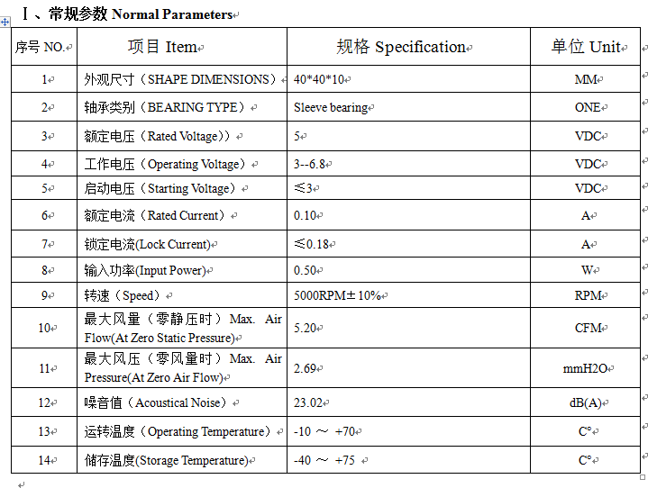 4010 5V -> 40*40*10 мм 5V с кабелем длиной 30 см