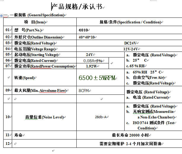 4010 24V -> 40*40*10 мм 24V с кабелем длиной 30 см
