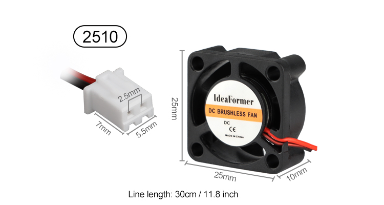 2510 12V -> 25*25*10 мм 12V с кабелем длиной 30 см