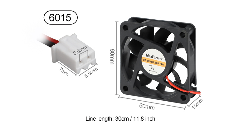 Размер вентилятора: 25*25*10 /30*30*10 /40*40*10 /50*50*10 /60*60*15 мм