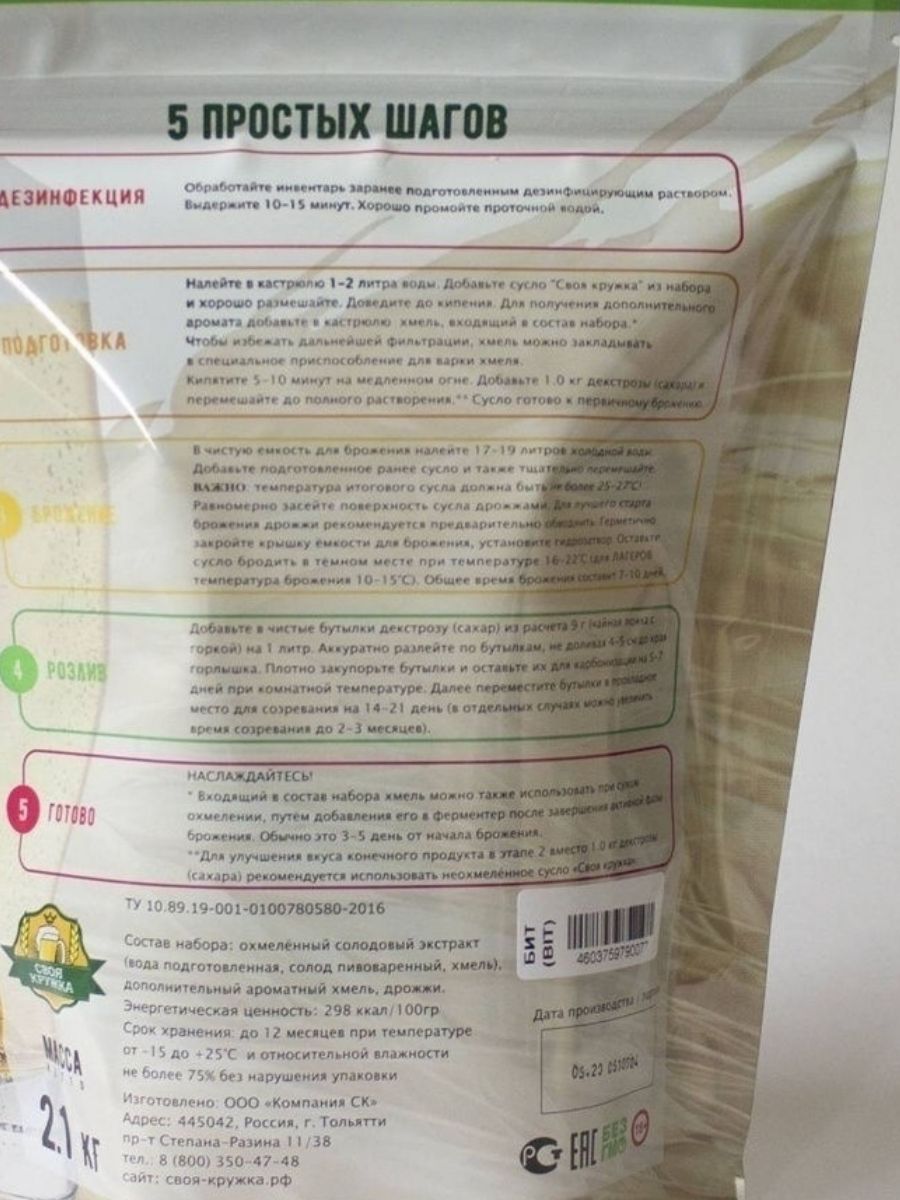 • Солодовый экстракт: солод светлый, солод карамельный, вода, хмель