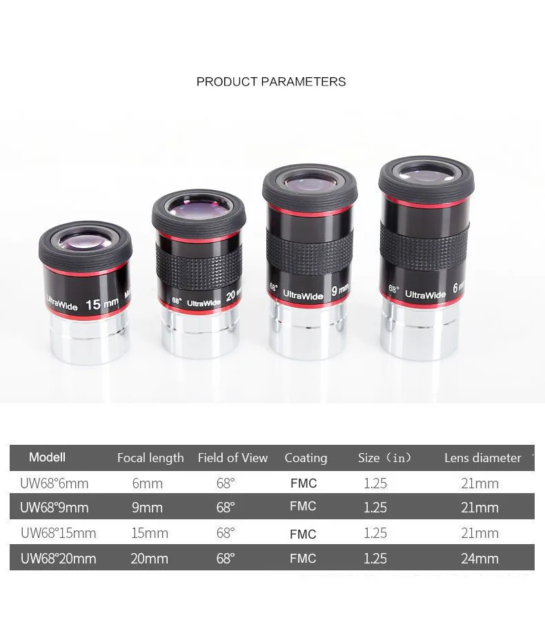 Окуляр для астрономического телескопа, 1,25 дюйма, 68 градусов, 6 мм, 9 мм, 15 мм, 20 мм