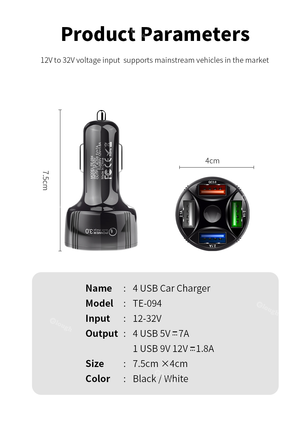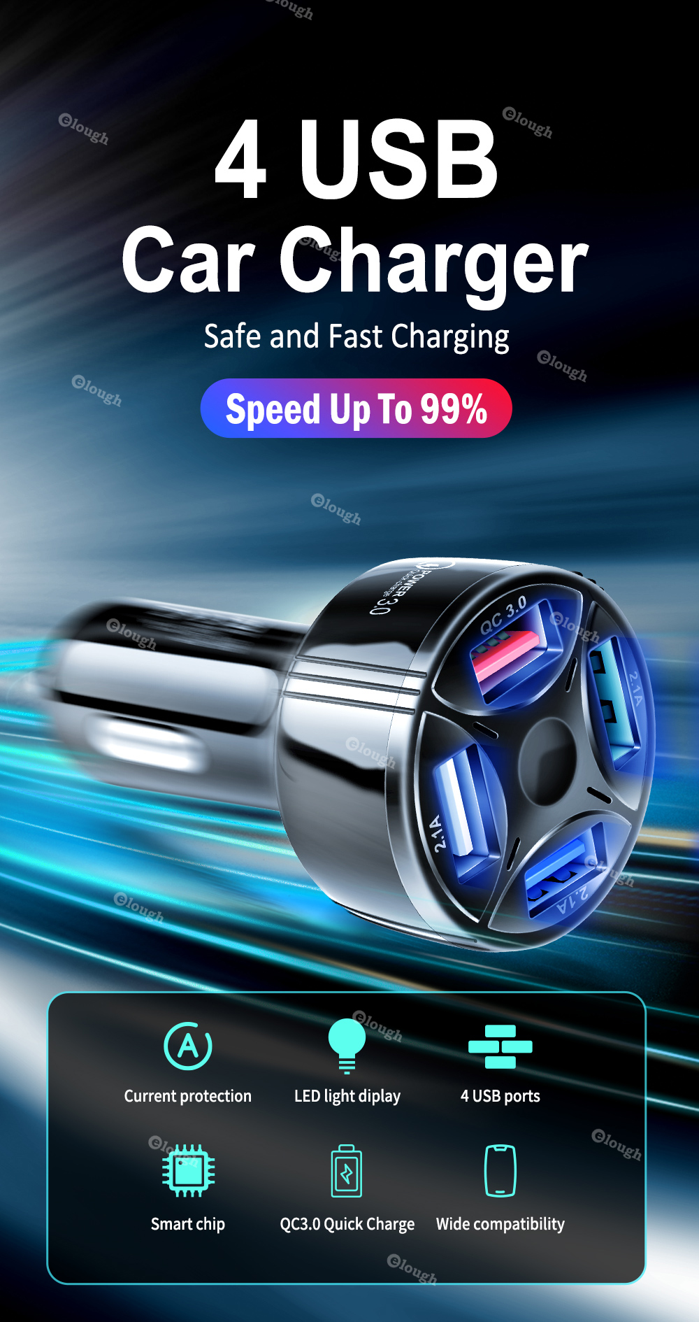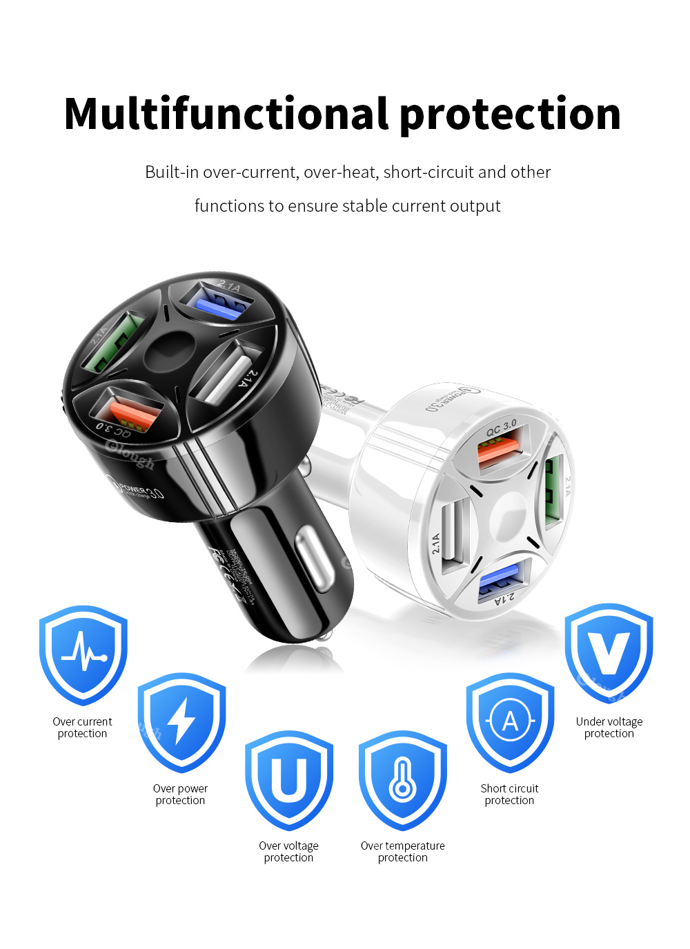 feature 4 car charger socket ,fast car charger,cargador para auto