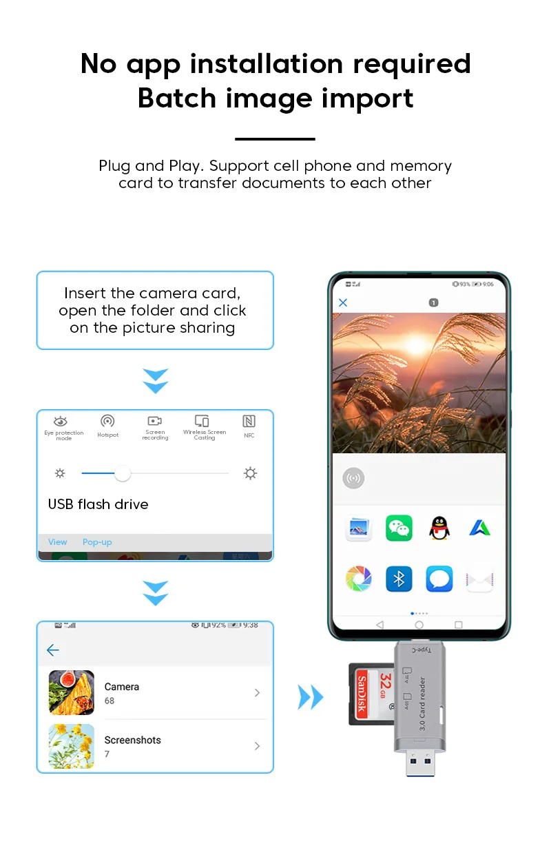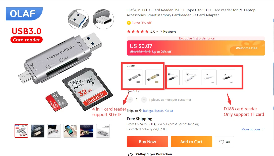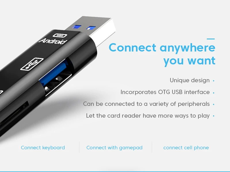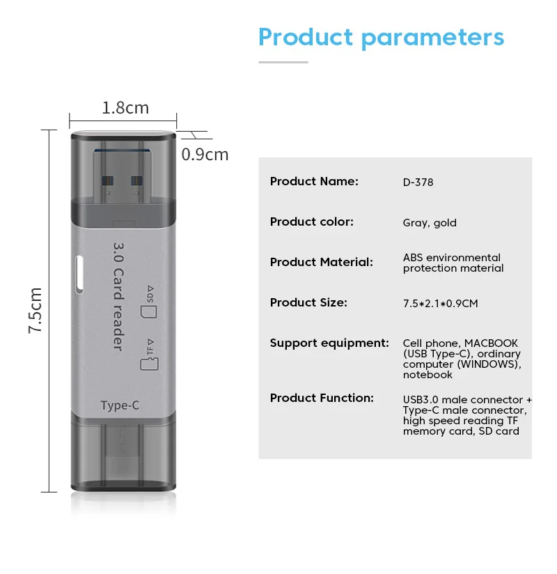 Существует два типа кард-ридеров: один поддерживает SD и TF-карты, а другой поддерживает только TF-карты. Пожалуйста, внимательно выберите товар перед размещением заказа.
