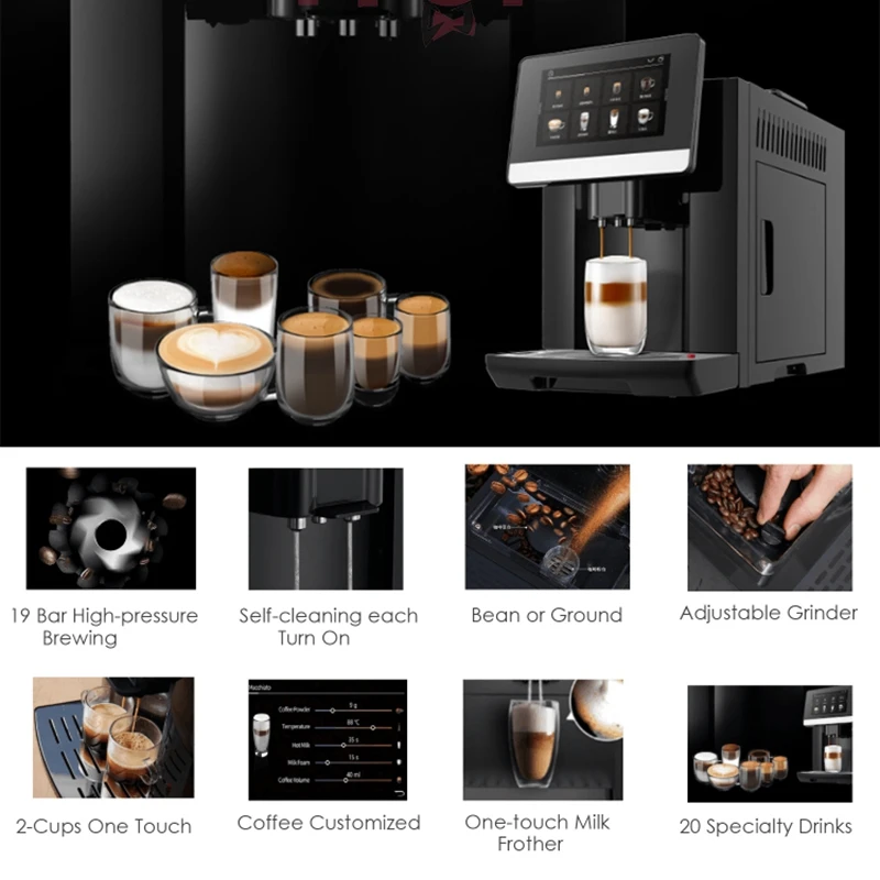 9. Подгонянный кофе/кофе фантазии с индивидуальной регулировкой Тома порошка кофе, температуры, Тома кофе, горячего молока и Тома пены молока.