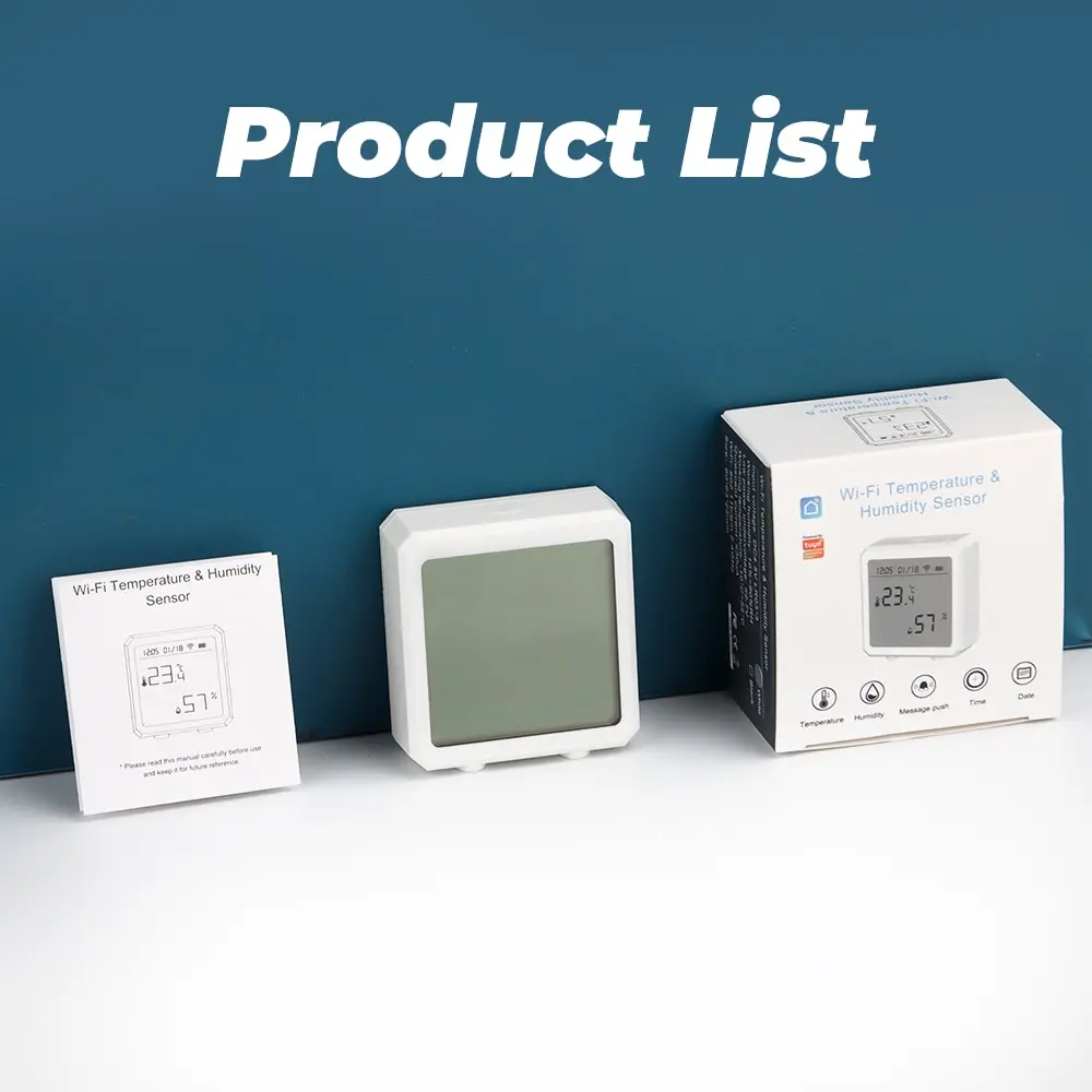 • Беспроводное подключение :Датчик подключается к домашней сети Wi-Fi, что позволяет контролировать температуру и уровень влажности вашего дома из любого места с помощью смартфона.