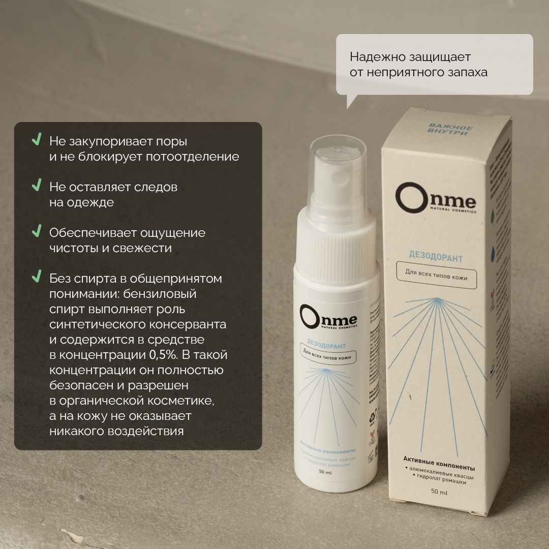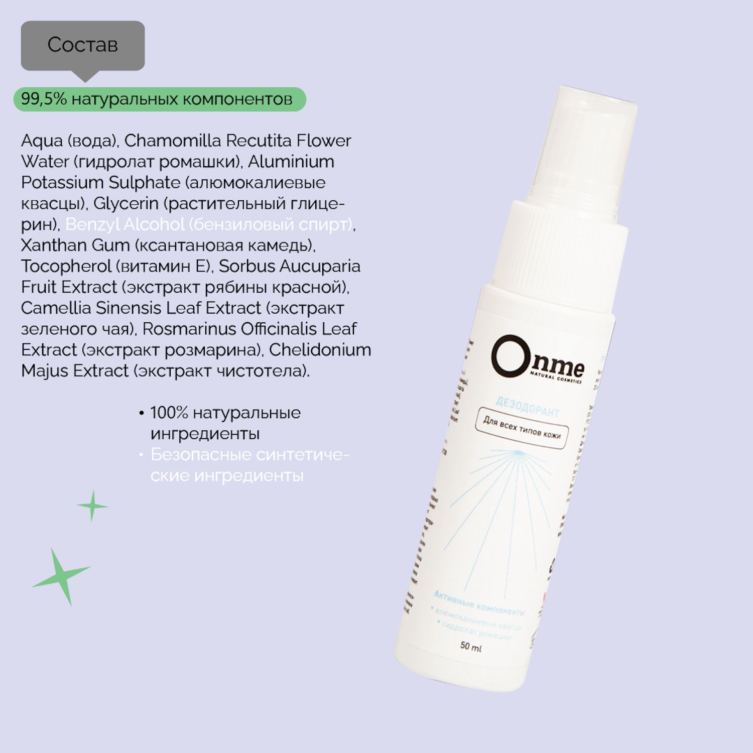 ONME Дезодорант для тела, натуральный на основе алюмокалиевых квасцов, 50 мл
