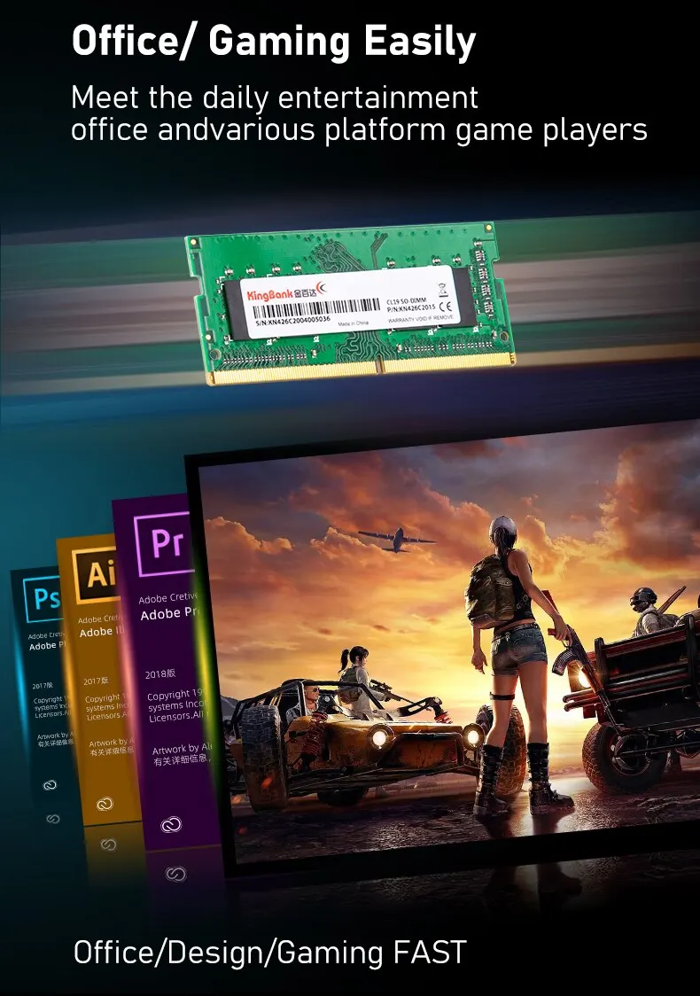 • В памяти ноутбука KingBank DDR4 используются высококачественные чипы, отличающиеся отличной производительностью и широкой совместимостью, что повышает вашу повседневную работу и развлечения.
