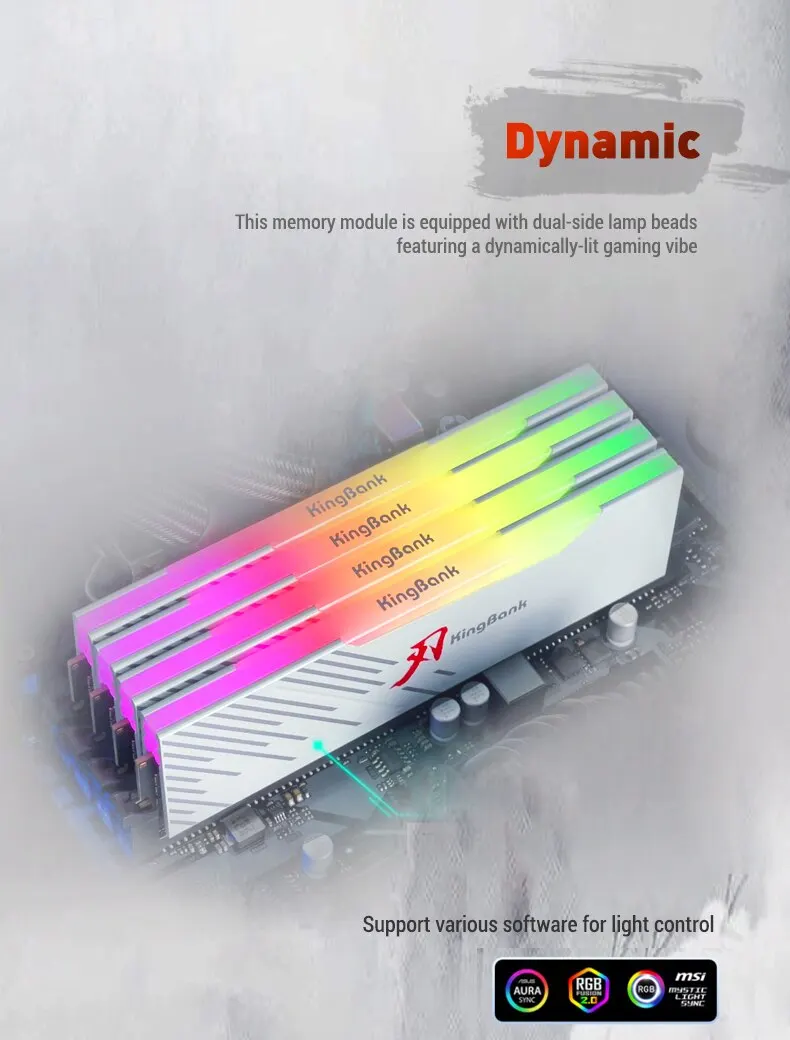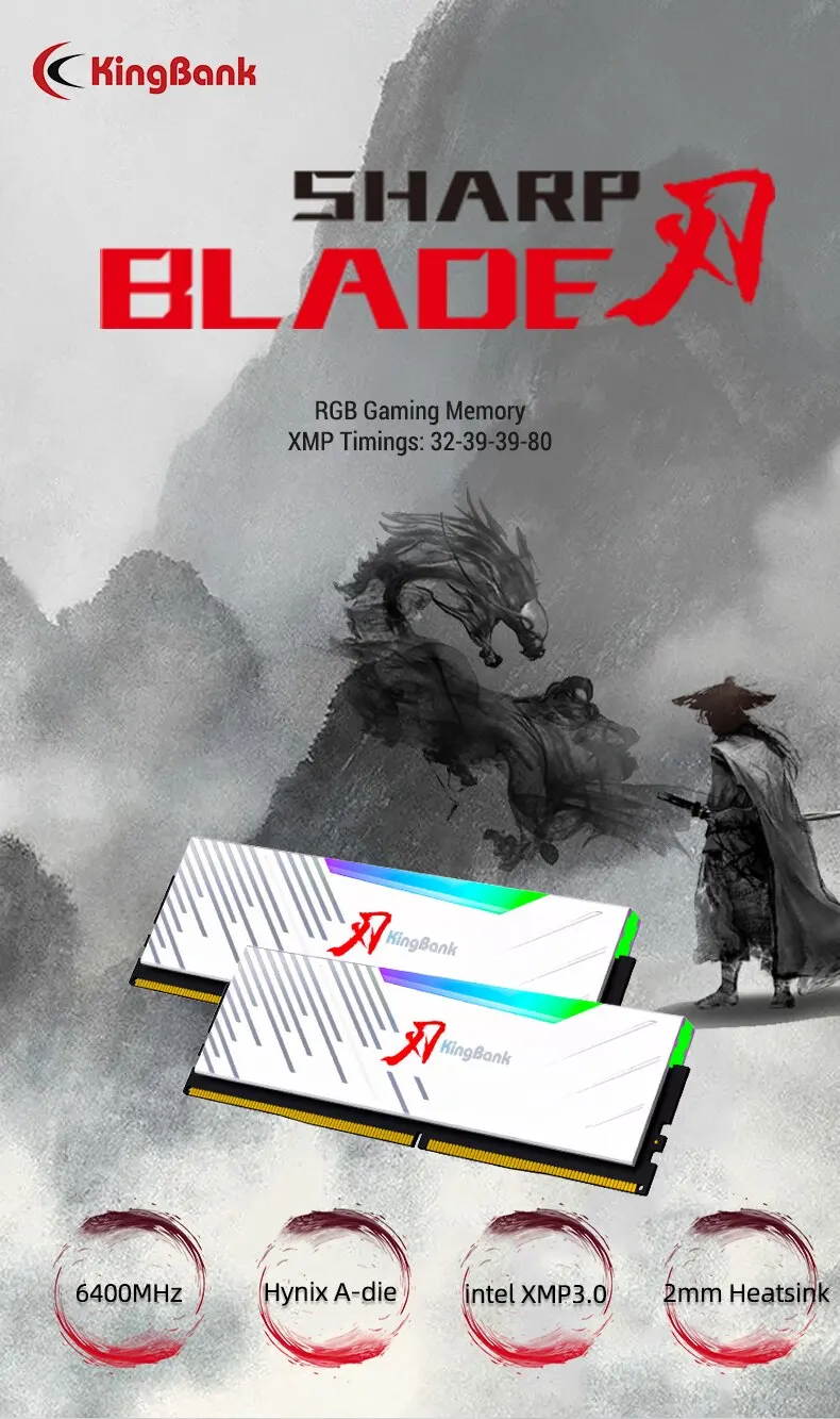 • Игровая память KingBank SharpBlade RGB использует оригинальные высококачественные чипы Hynix A-Die и металлический радиатор диаметром 2 мм для повышения ее производительности. Лампа RGB с бусинами, уложенными с обеих сторон, создает ослепительный визуальный эффект.